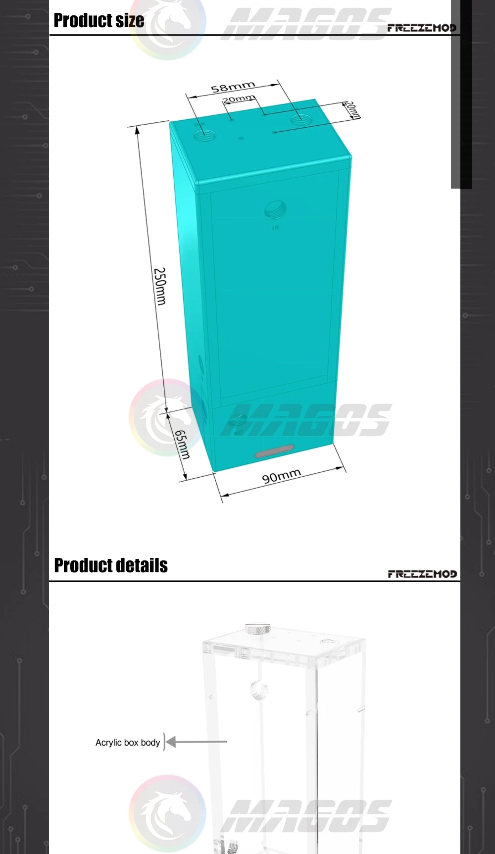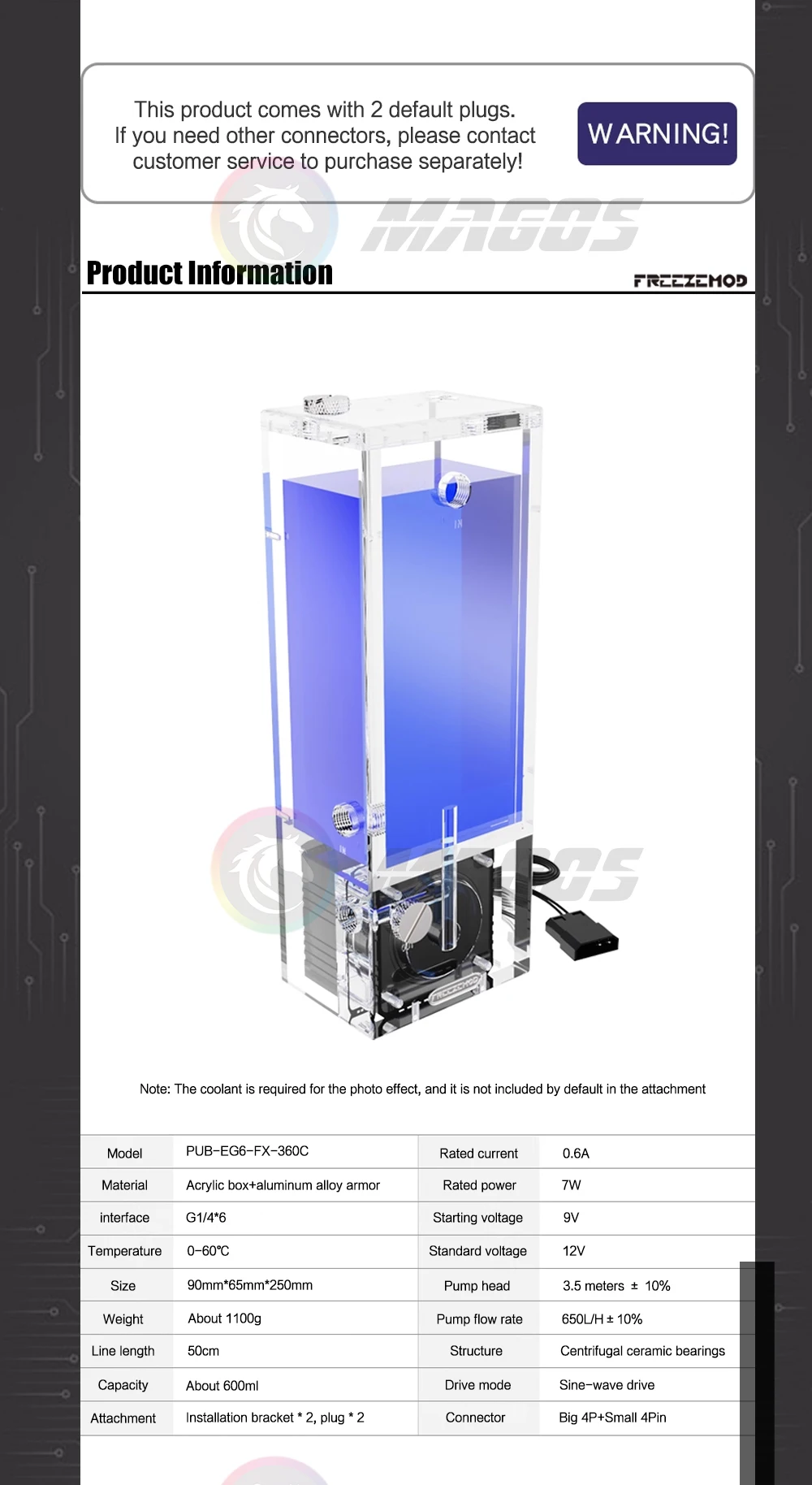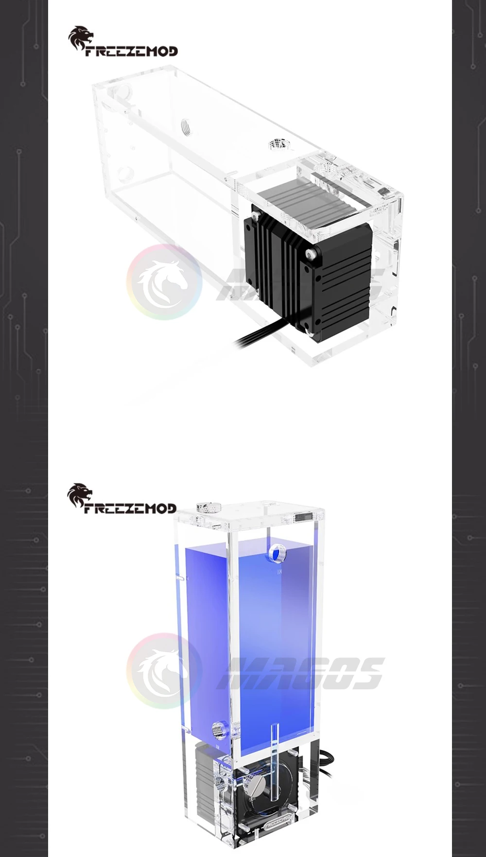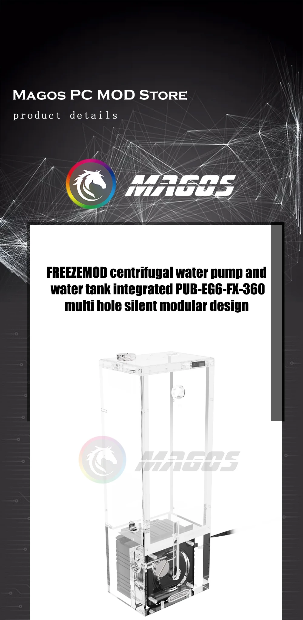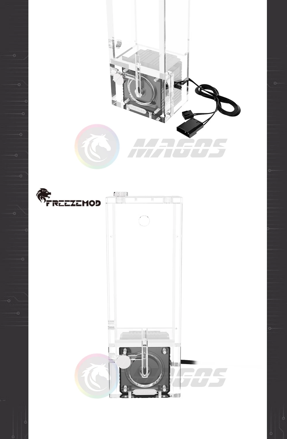 FREEZEMOD Bomba de caja AIO Depósito de forma cuadrada, núcleo de bomba centrífuga de 650 L/H/Diseño modular silencioso, 600 ML PUB-EG6-FX-360