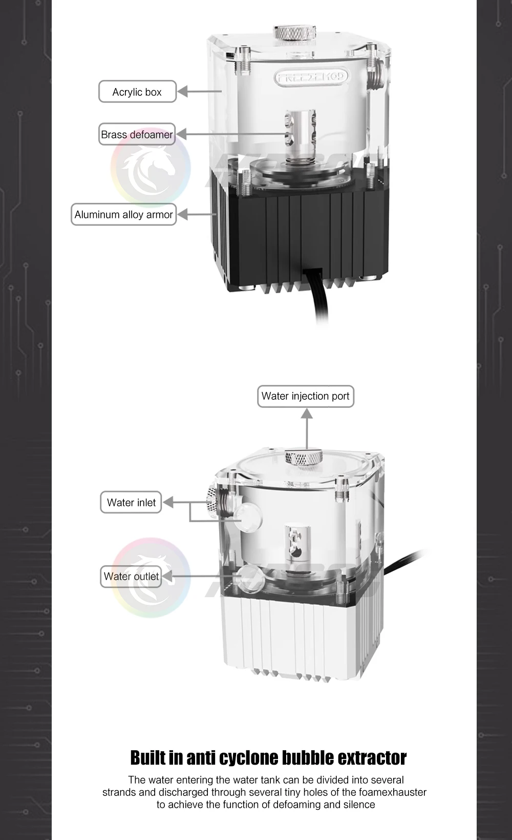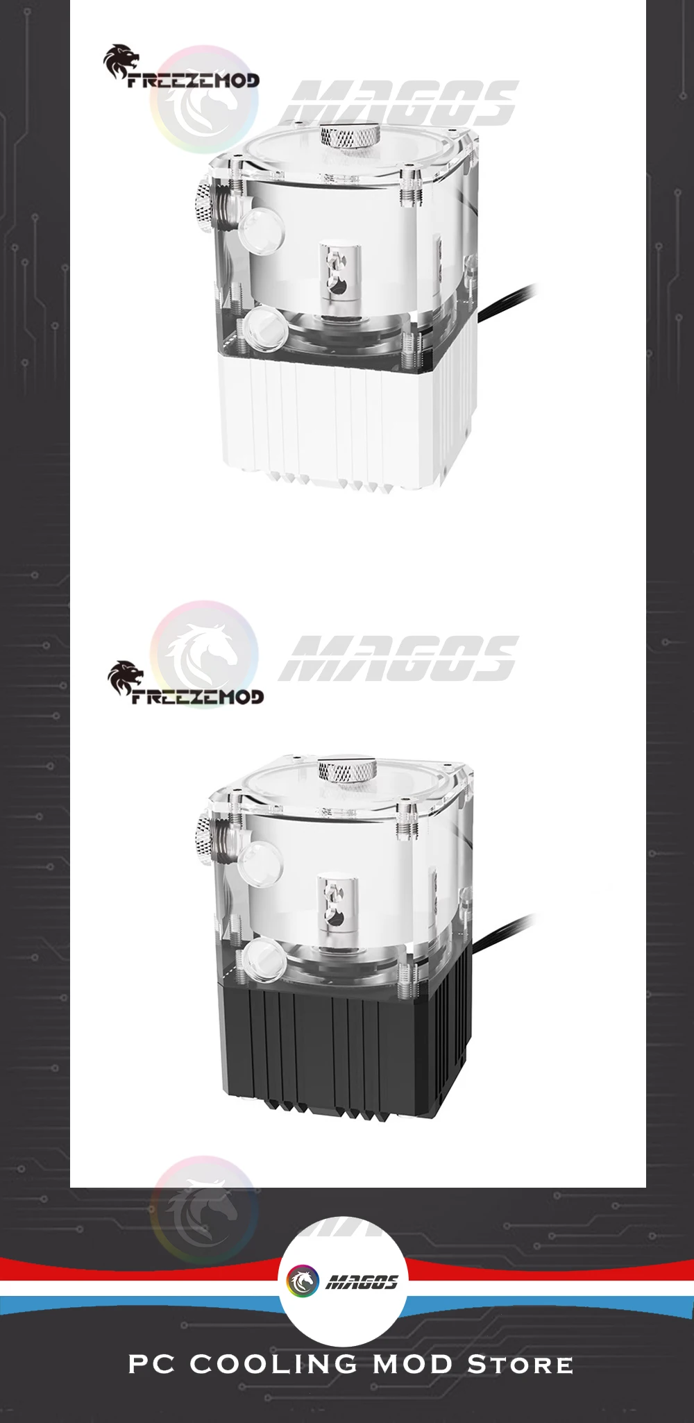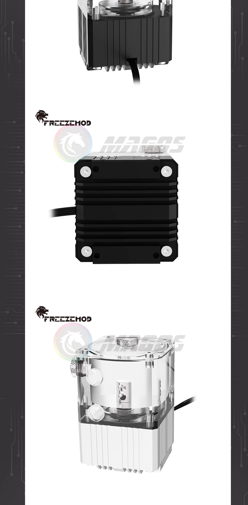 FreezeMod Bomba de caja de refrigeración por agua Res para caja Mini ITX, + indicador de flujo, 4000 RPM, 780 L/H, negro/plata/blanco PUB-Q2YT
