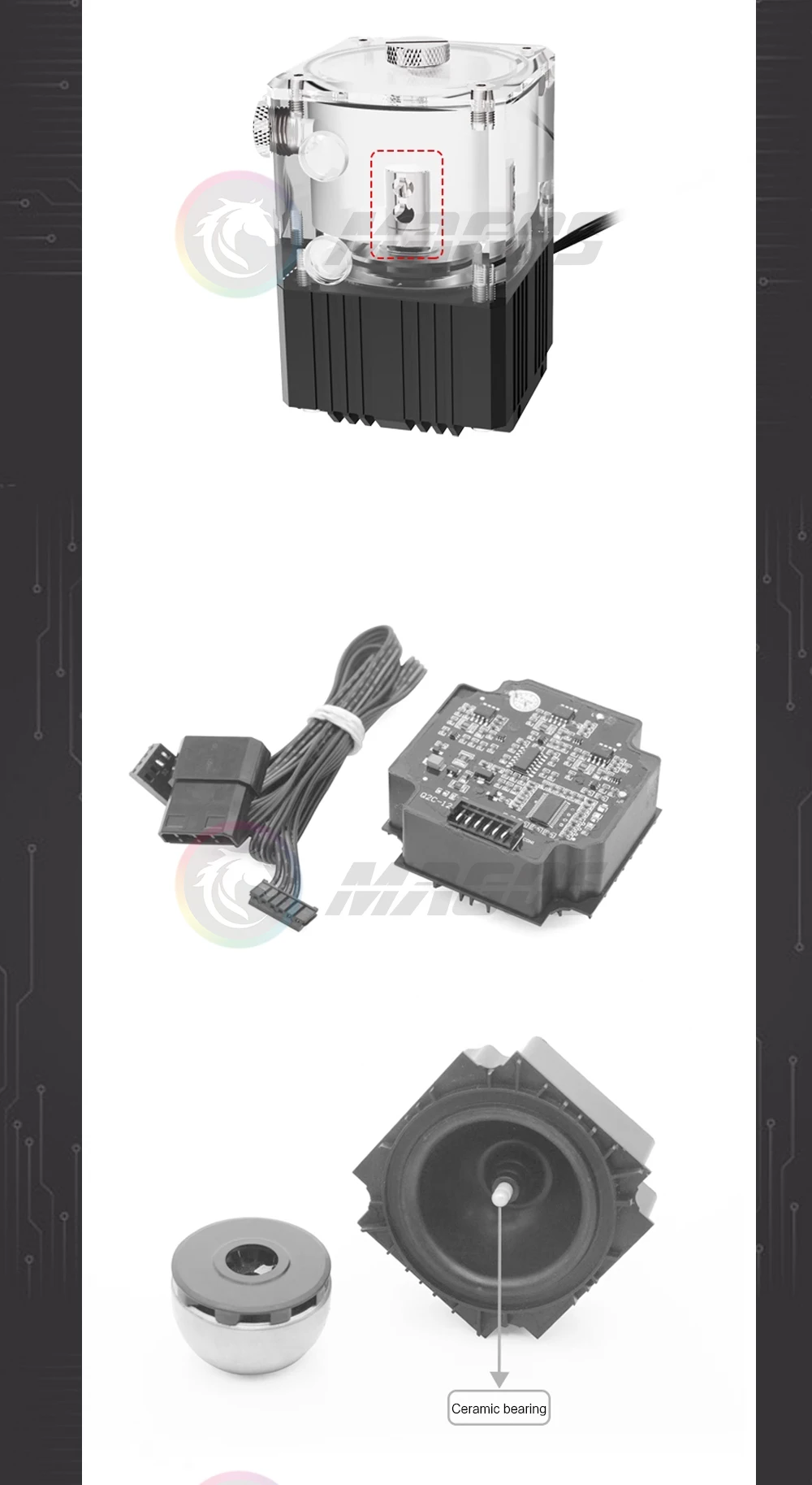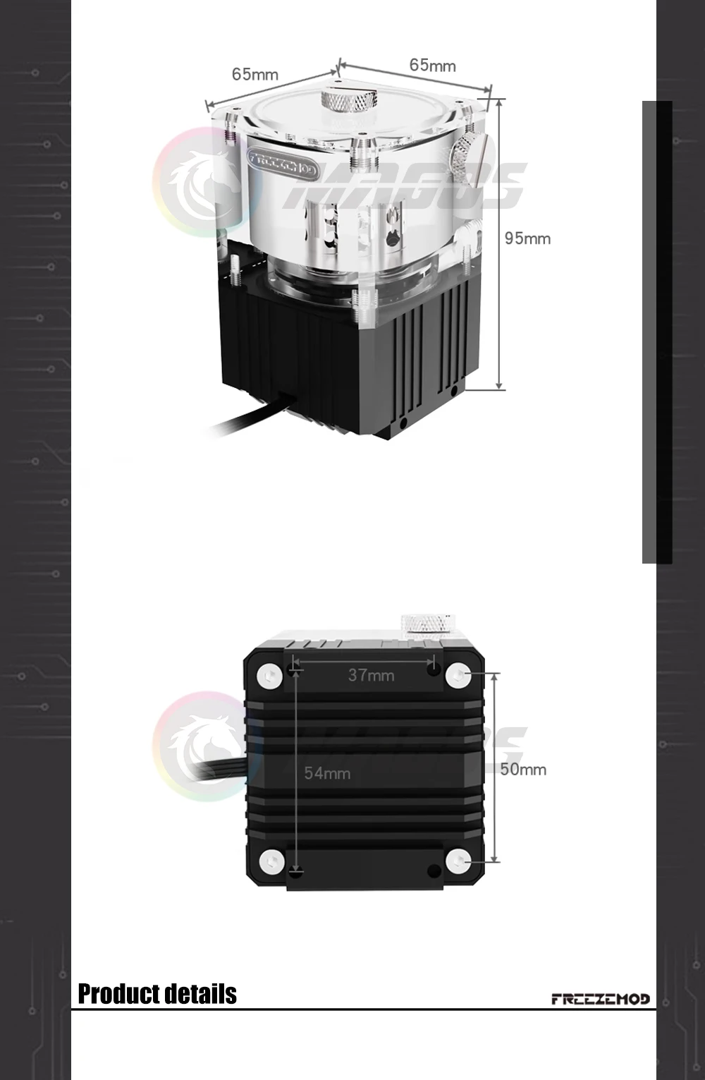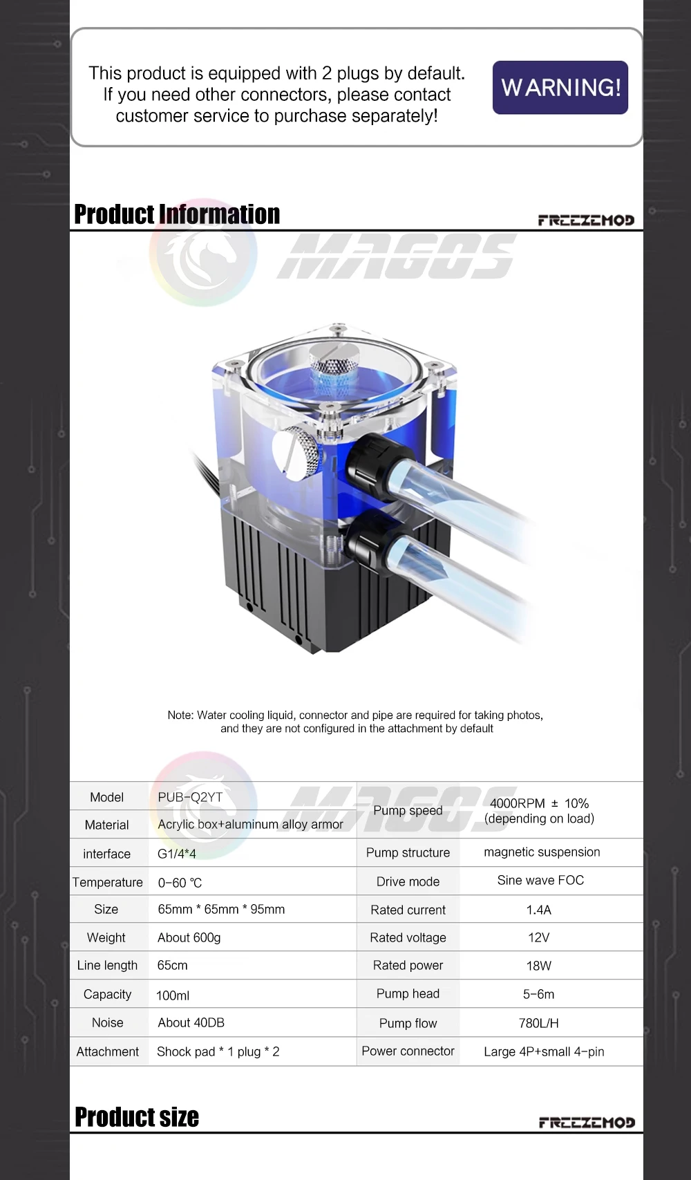FreezeMod Bomba de caja de refrigeración por agua Res para caja Mini ITX, + indicador de flujo, 4000 RPM, 780 L/H, negro/plata/blanco PUB-Q2YT