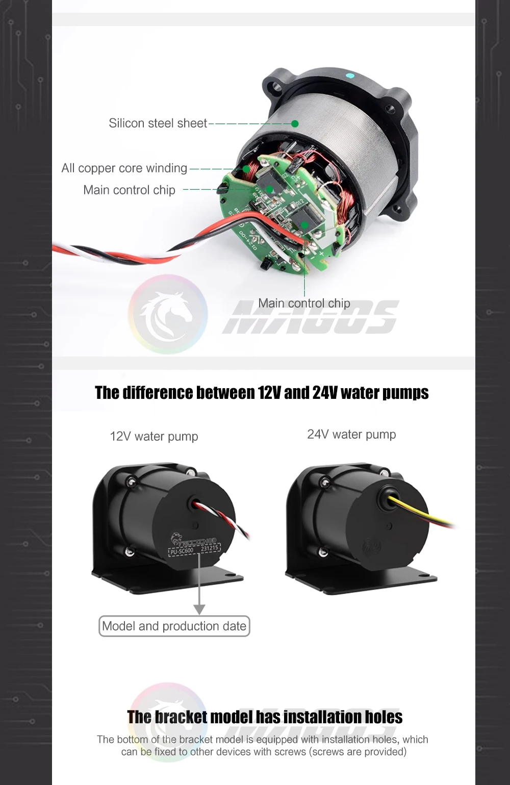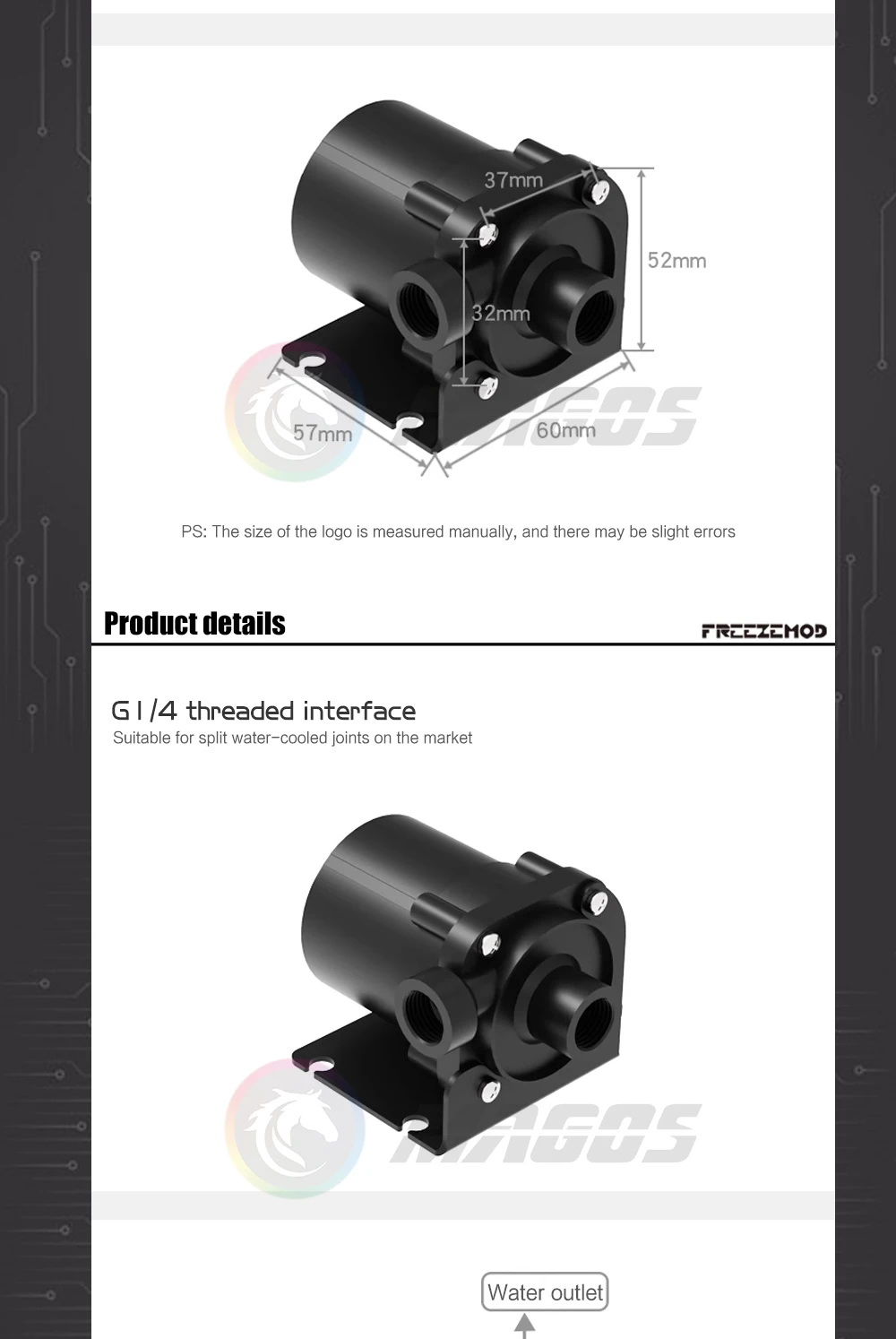Comprar FREEZEMOD bomba de CC de refrigeración por agua para ordenador, núcleo de eje de cerámica de amortiguación de línea de velocidad 3600RP 5M flujo 600L/H PU-SC600