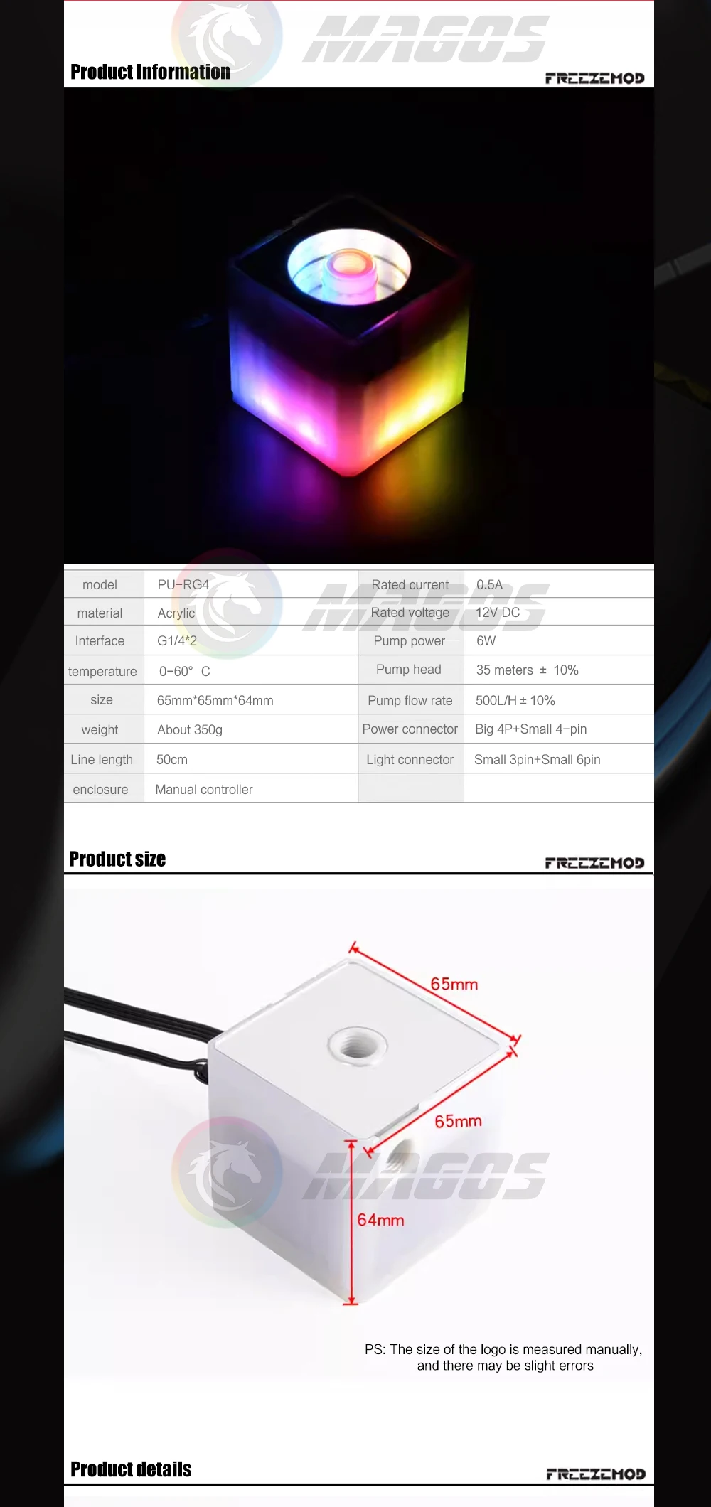 Comprar FREEZEMOD Bomba de refrigeración por agua para computadora 5V ARGB Full White PC Enfriador de líquido Motor 65X65mm G1/4 ''rosca Universal