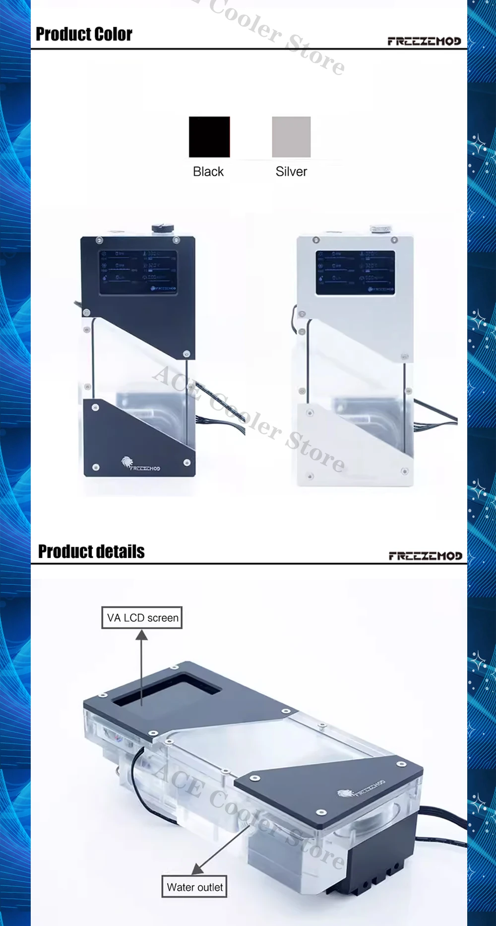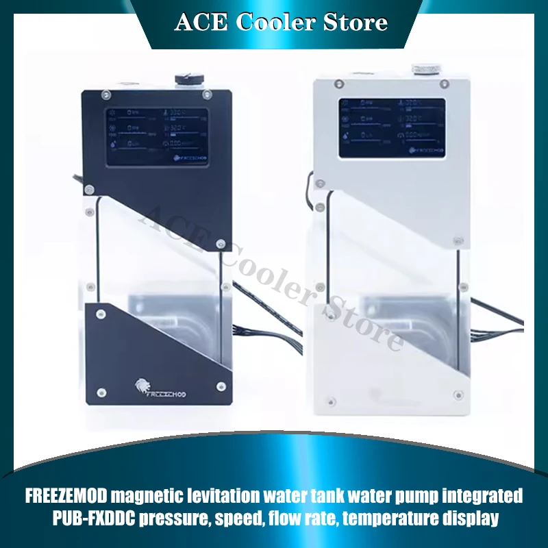 Comprar FREEZEMOD Caja de bomba cuadrada con suspensión magnética, depósito AIO, presión de aire/velocidad/mediana de flujo/pantalla digital de temperatura, 960L/H