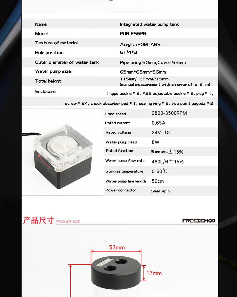 Comprar FREEZEMOD-caja de bomba de PUB-24PR refrigerada por agua para ordenador, refrigeración de agua integrada, voltaje y flujo de 24V, 480L