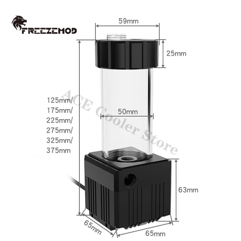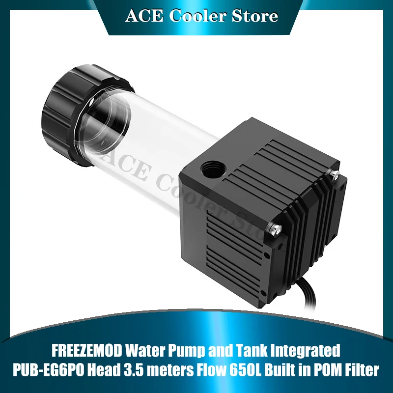 FREEZEMOD Combo de bomba de caja AIO de refrigeración por agua para PC, elevación de 3,5 m/flujo 650L/H Filtro de bombilla POM incorporado, 12-37 cm de longitud, PUB-EG6PO
