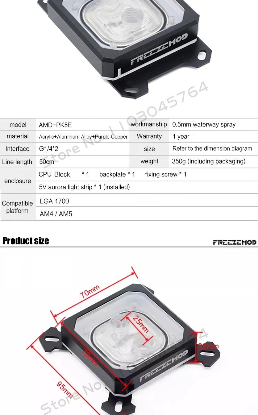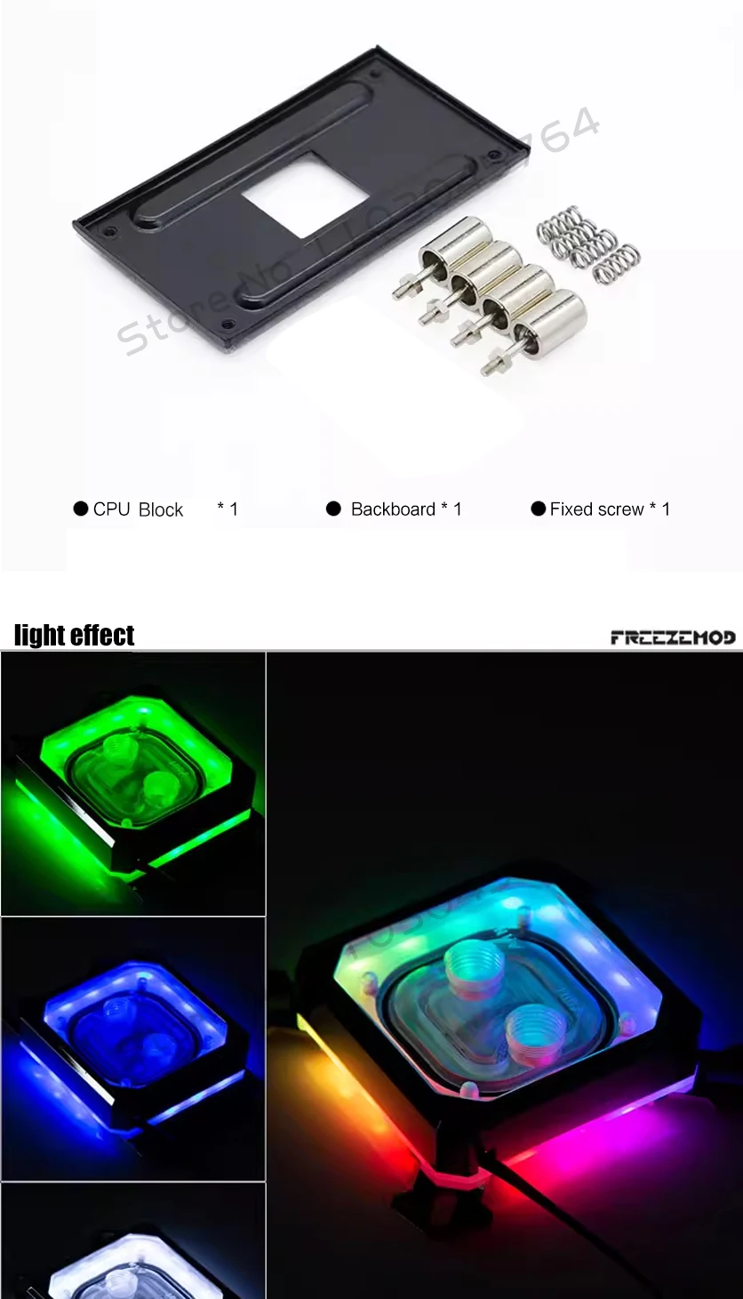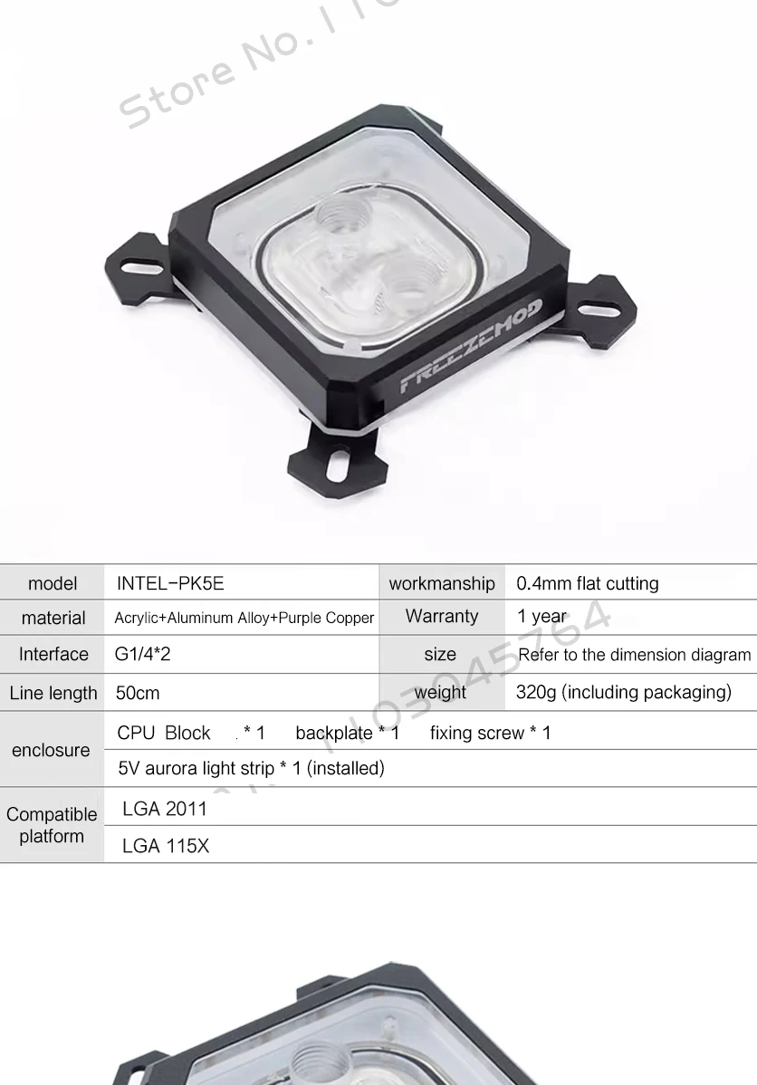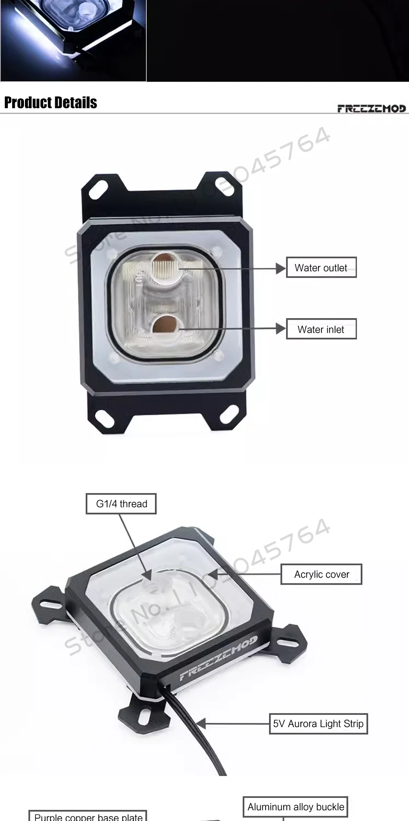 Comprar FREEZEMOD Computadora CPU Bloque de agua 5V ARGB SYNC, efecto de luz de difusión Aurora, cubierta PMMA + marco de aluminio INTEL-PK5E / AMD-PK5E