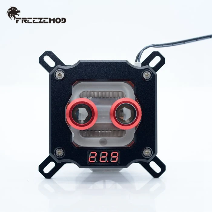Características: El desarrollo más nuevo del bloque de enfriamiento de agua con detección de temperatura de FREEZEMOD, el producto integra el sentido de temperatura digital, los clientes pueden monitorear intuitivamente la temperatura del sistema, este producto también está equipado con función RGB, se puede controlar por separado y puede admitir el La más nueva función de sincronización AURA, puede sincronizar el control con el tanque de agua, el ventilador, el cabezal de enfriamiento de cobertura total, la barra de luz del chasis, la lámpara de enchufe vendida en nuestra tienda