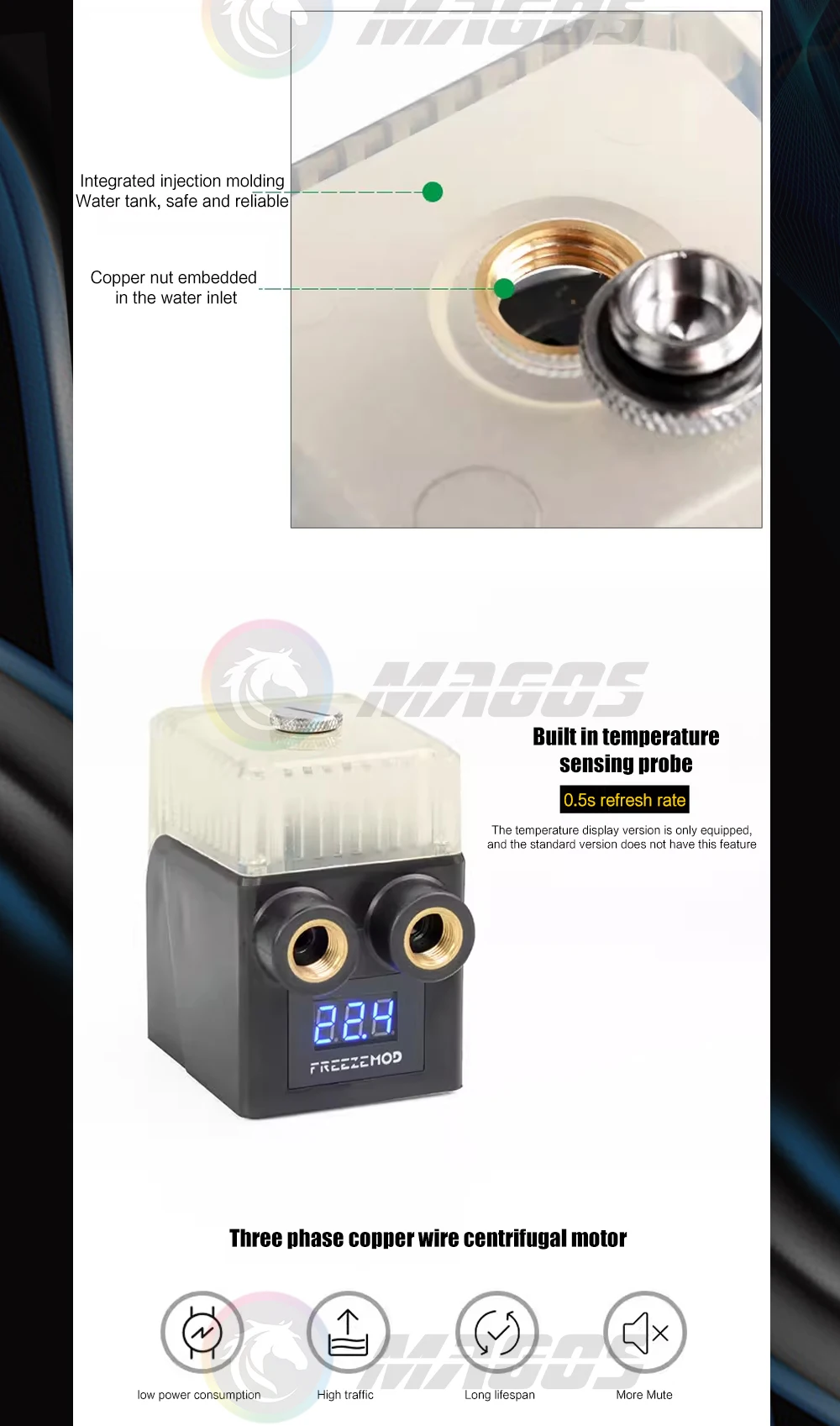 Comprar FREEZEMOD depósito de bomba de agua AIO con pantalla de temperatura, tanque de agua Res Lift 3 metros, flujo 450L/H, negro/blanco