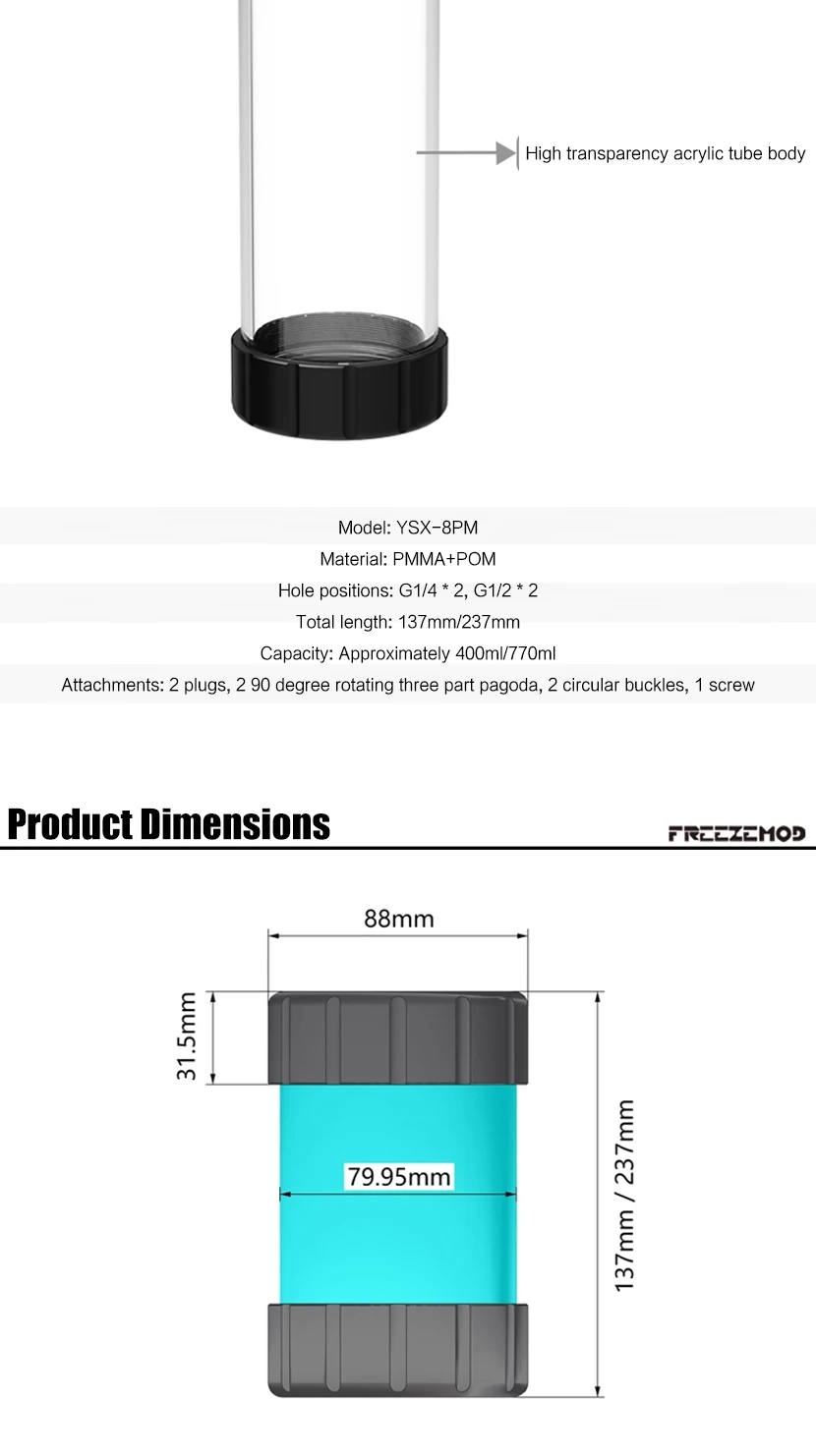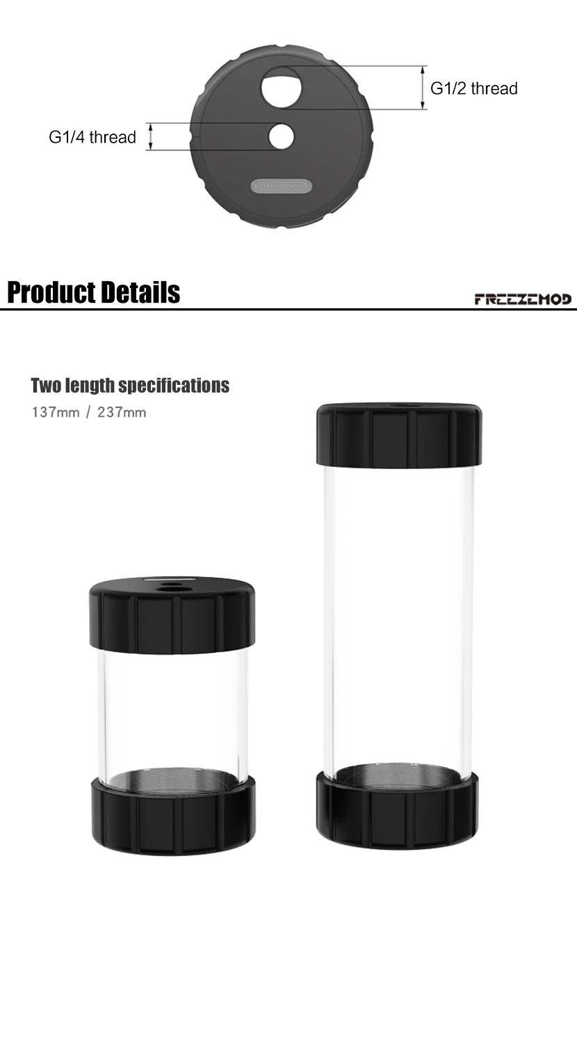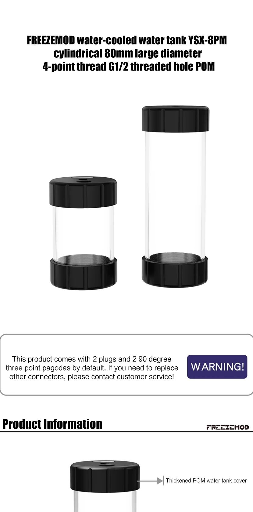FREEZEMOD Depósito de enfriamiento por agua Depósito cilíndrico grande con diámetro exterior de 80 mm, 130 mm/230 mm de longitud, 2 roscas G1/2'', YSX-8PM