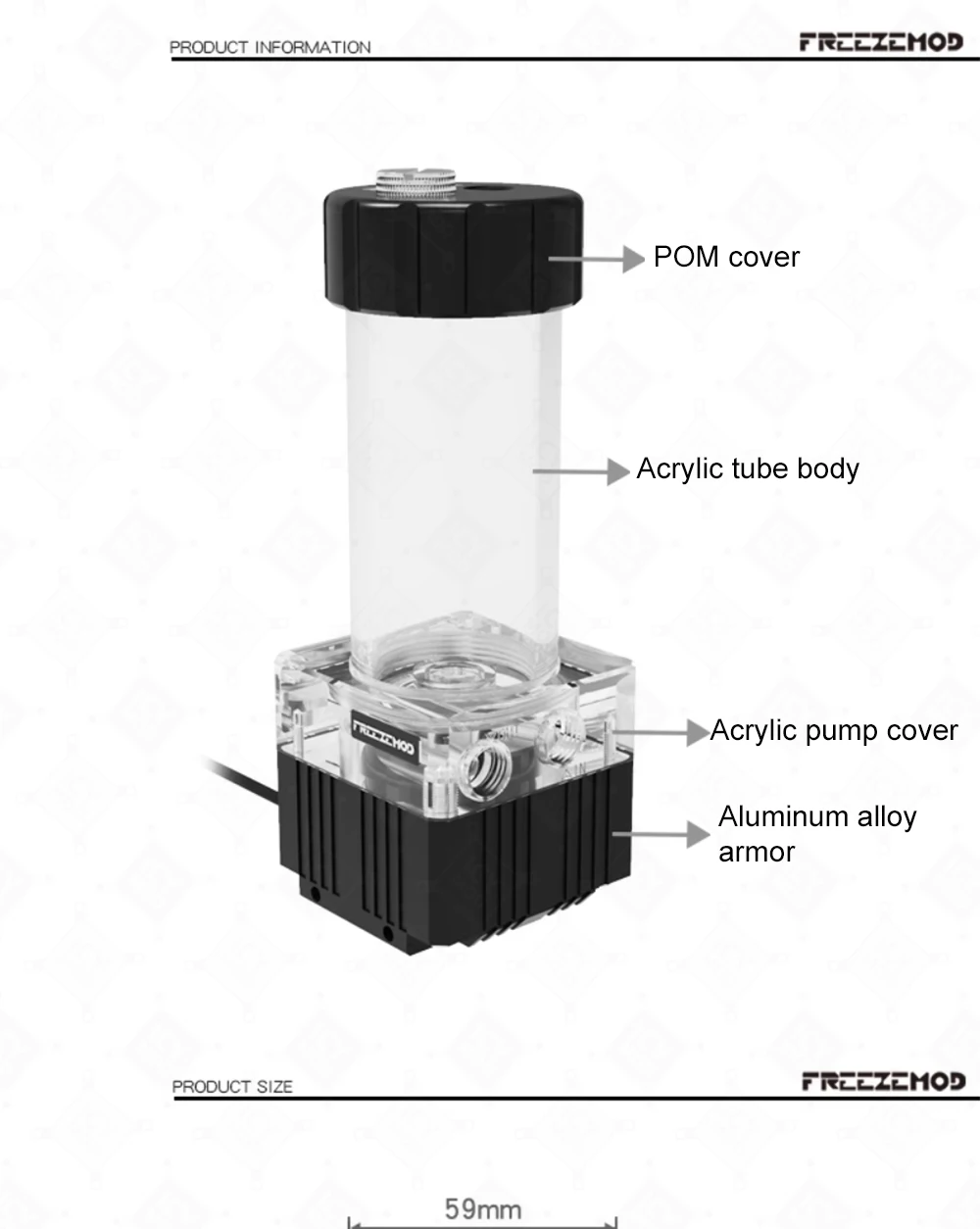 FREEZEMOD-depósito OD50mm de 122-372mm, pantalla de filtro de 5-6m, núcleo de bomba de suspensión magnética, 780L/H, MOD refrigerado por agua, PUB-GCDCA2