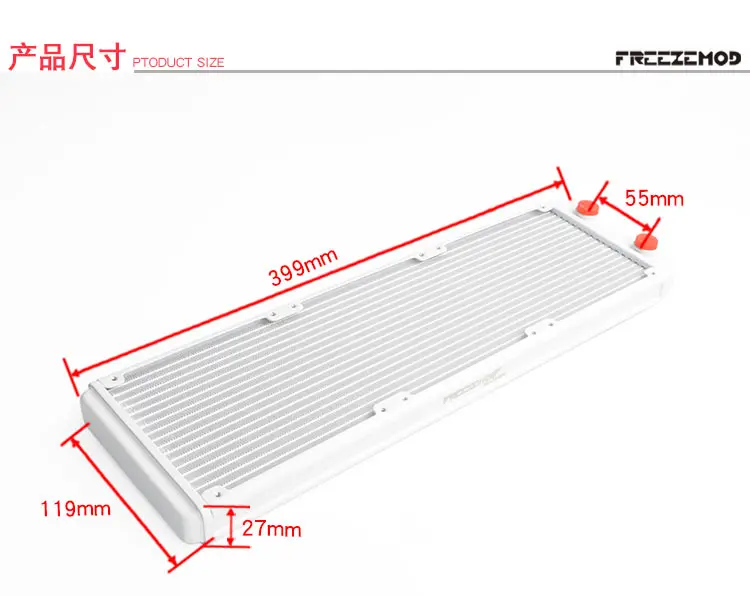 Comprar FREEZEMOD-disipador de calor de 360mm, radiador de aluminio blanco de 27mm, rosca G1/4, 36cm, refrigeración por agua, 17 aletas de escudo de onda, ROHS, PC SR-LPZJ360