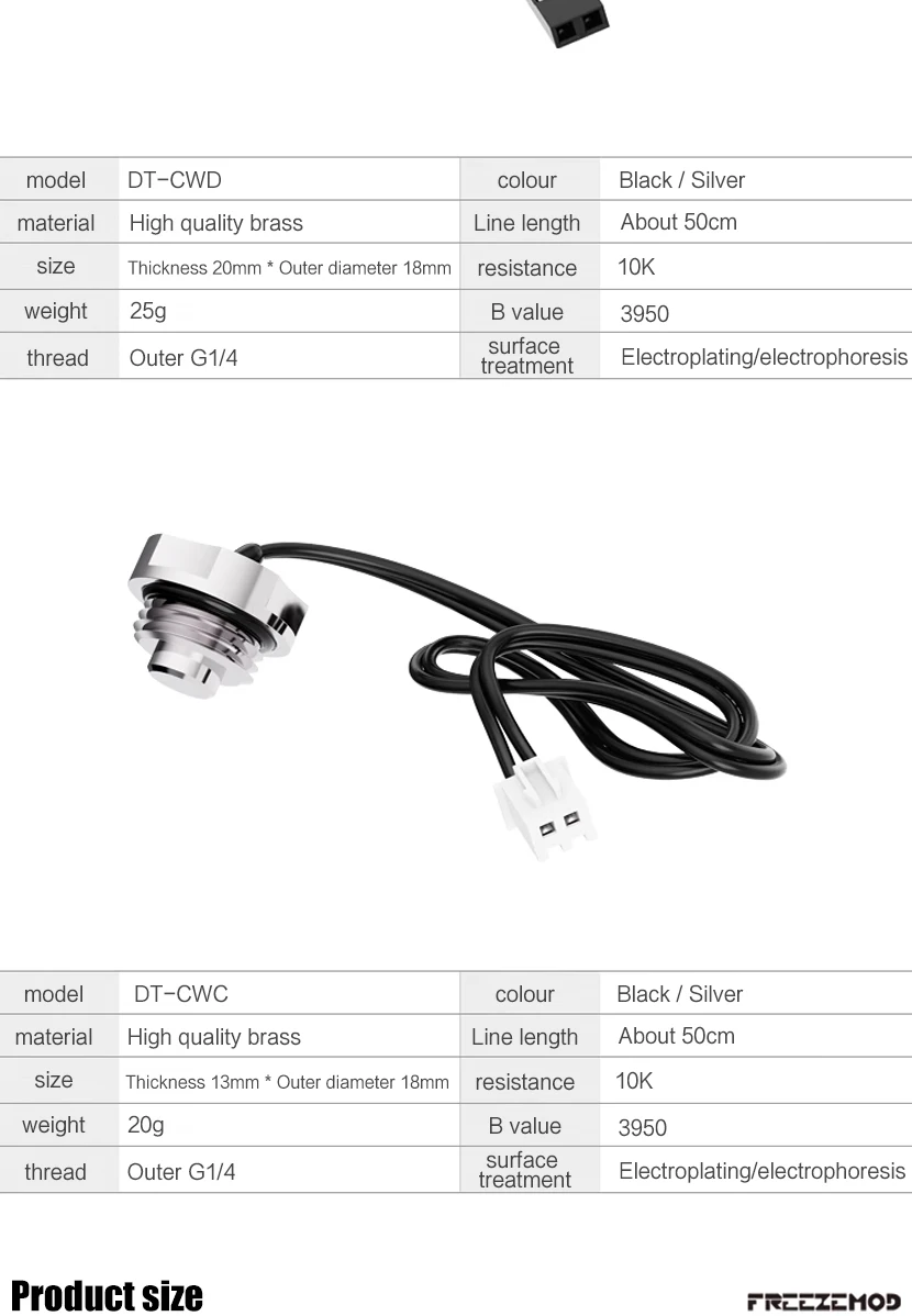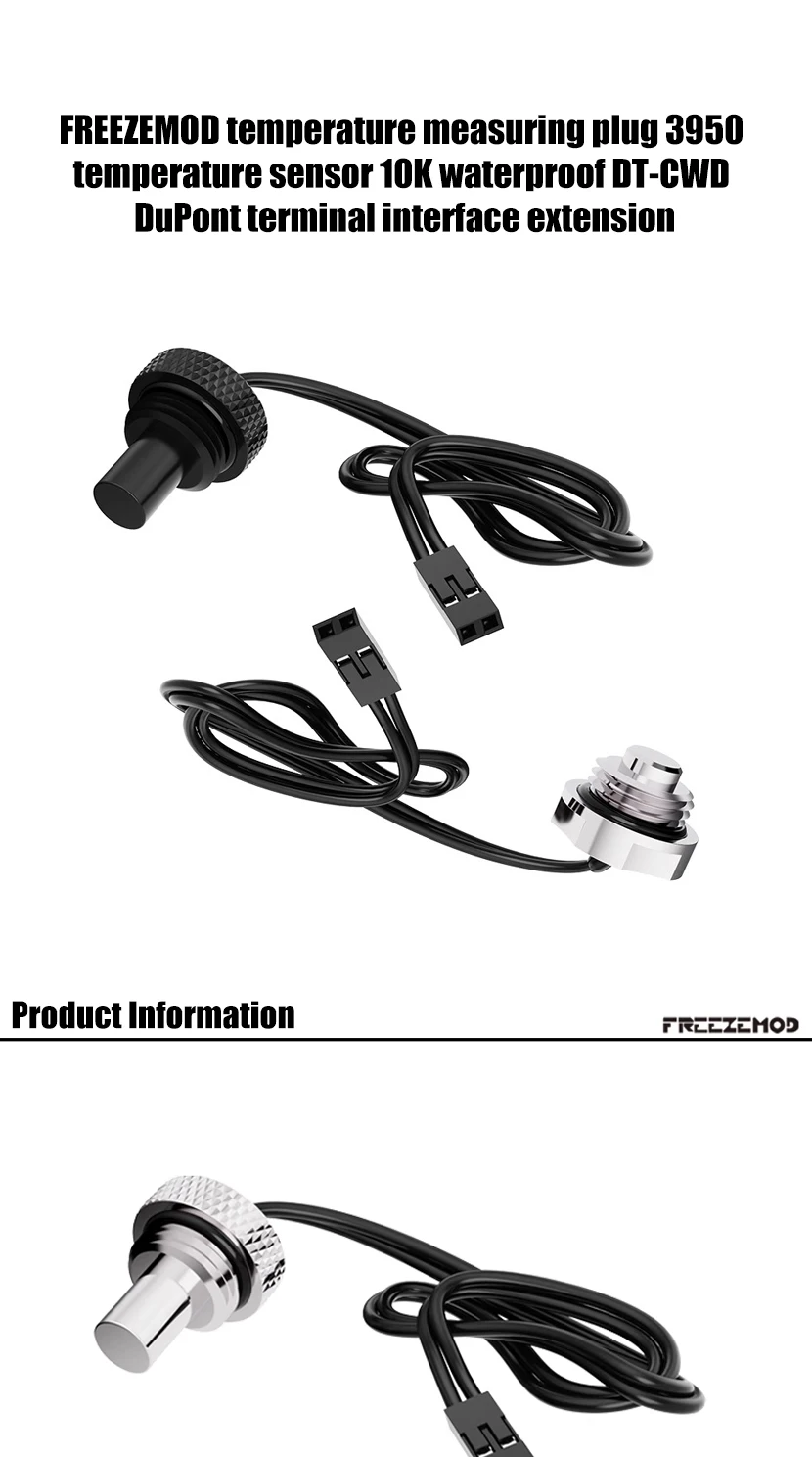 FREEZEMOD-enchufe final de medición de temperatura de refrigeración por agua, Sensor de termómetro 3950 10K, resistente al agua, corto o largo, DT-CWD DT-CWC