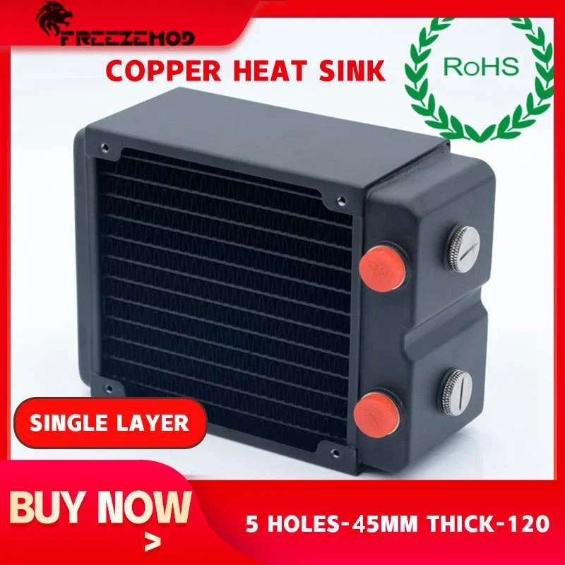 Comprar FREEZEMOD-enfriador de agua para PC, radiador de cobre de doble capa, aletas de cobre gruesas de 45mm, cinco agujeros, disipador de calor G1/4, TSRP-HP45-120, 120MM