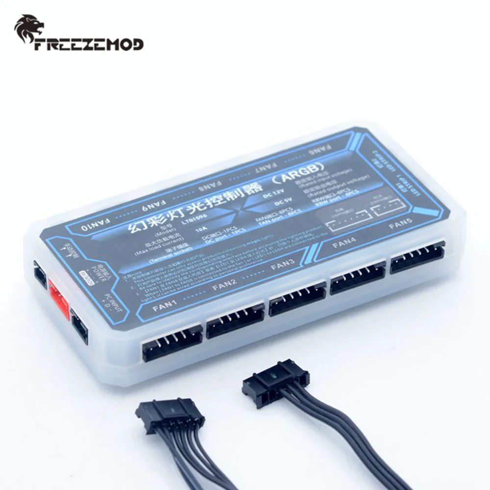 Comprar FREEZEMOD-Hub RGB de 1-10 ventiladores, divisor de 5V y 3 pines, control remoto, A-RGB, MOBO AURA SYNC, CH-YKKZ-JX de iluminación de colores arcoíris