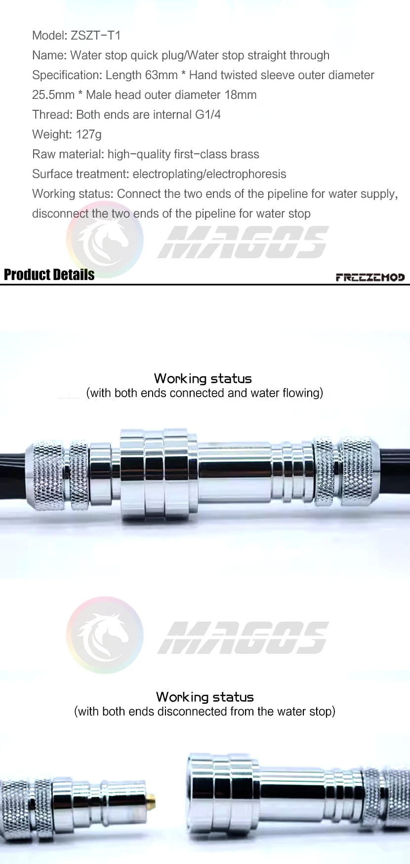 FREEZEMOD-Kit de montaje desconectado para parada de agua, refrigeración por agua, acceso directo, negro/plata, ZSZT-T1