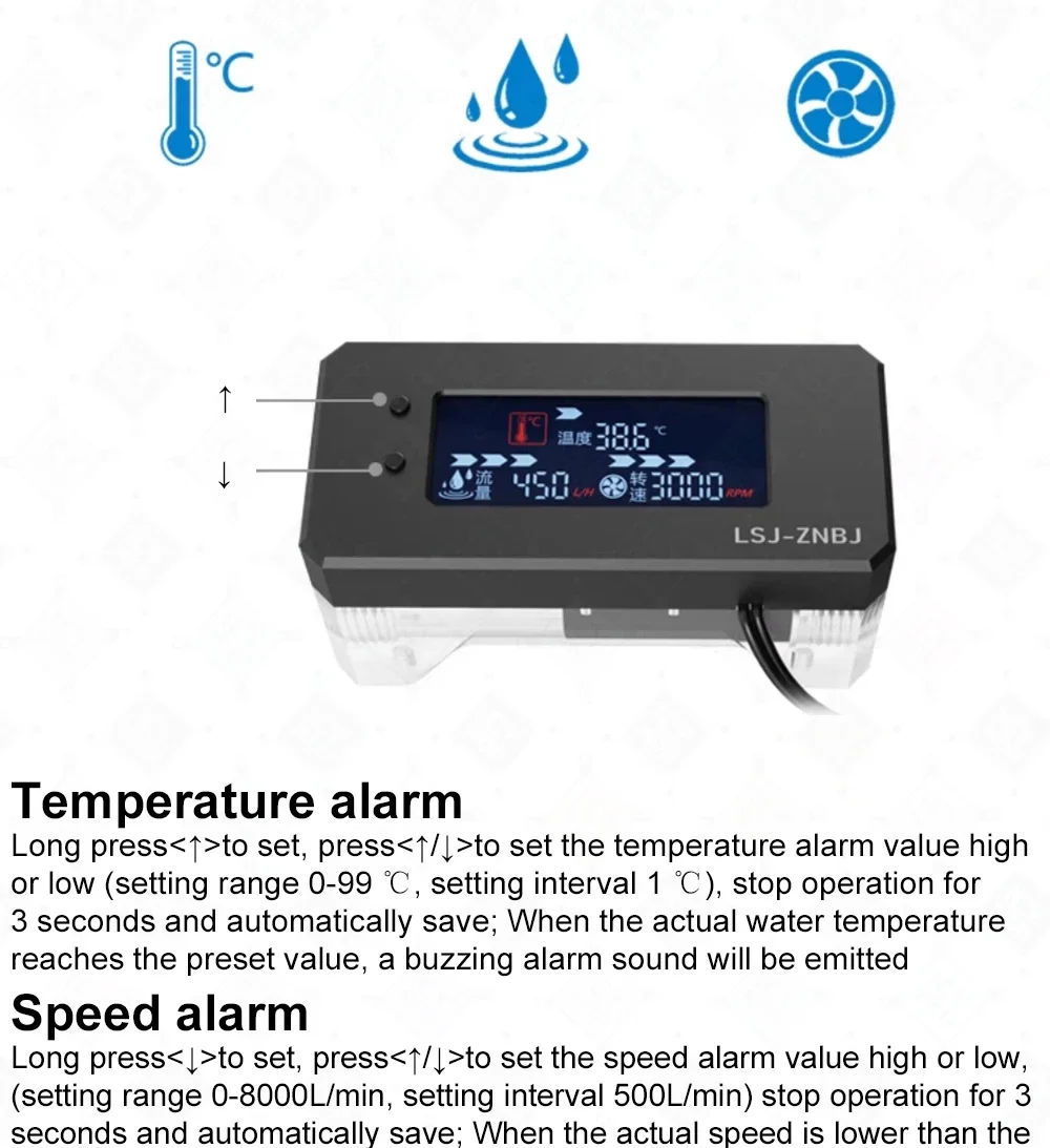 Comprar FREEZEMOD LCD alarma velocidad flujo temperatura monitoreo de líquidos parada de funcionamiento alarma de alta temperatura MOD refrigeración por agua LSJ-ZNBJ