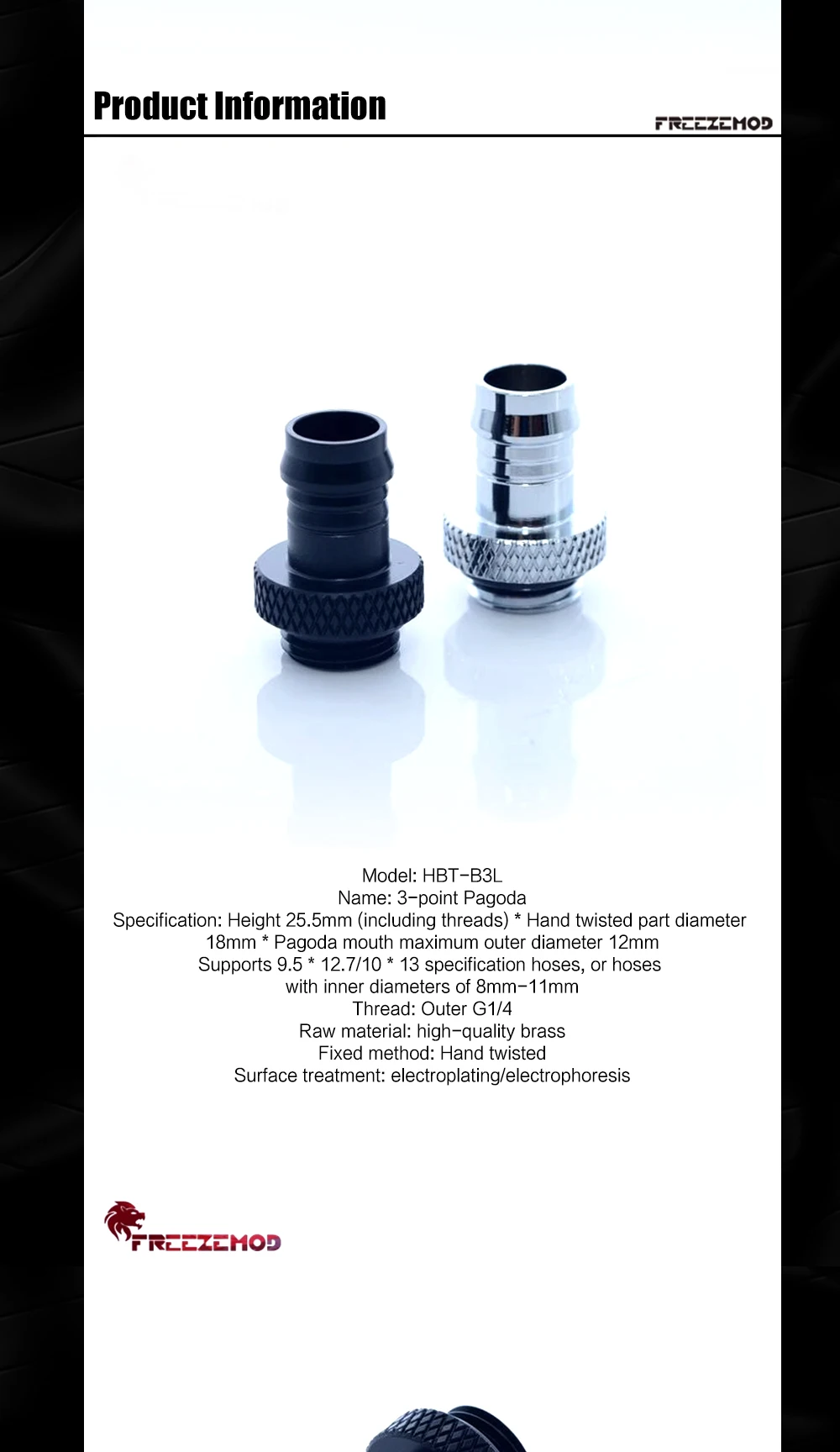 FREEZEMOD-manguera de enfriamiento para PC, accesorio para tubo Flexible de 10x13mm, Pagoda retorcida a mano, negro plateado, HBT-B3L