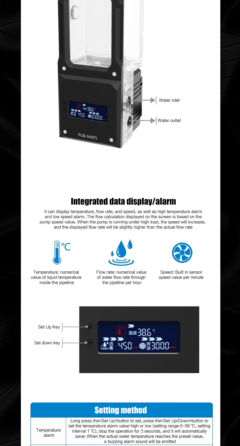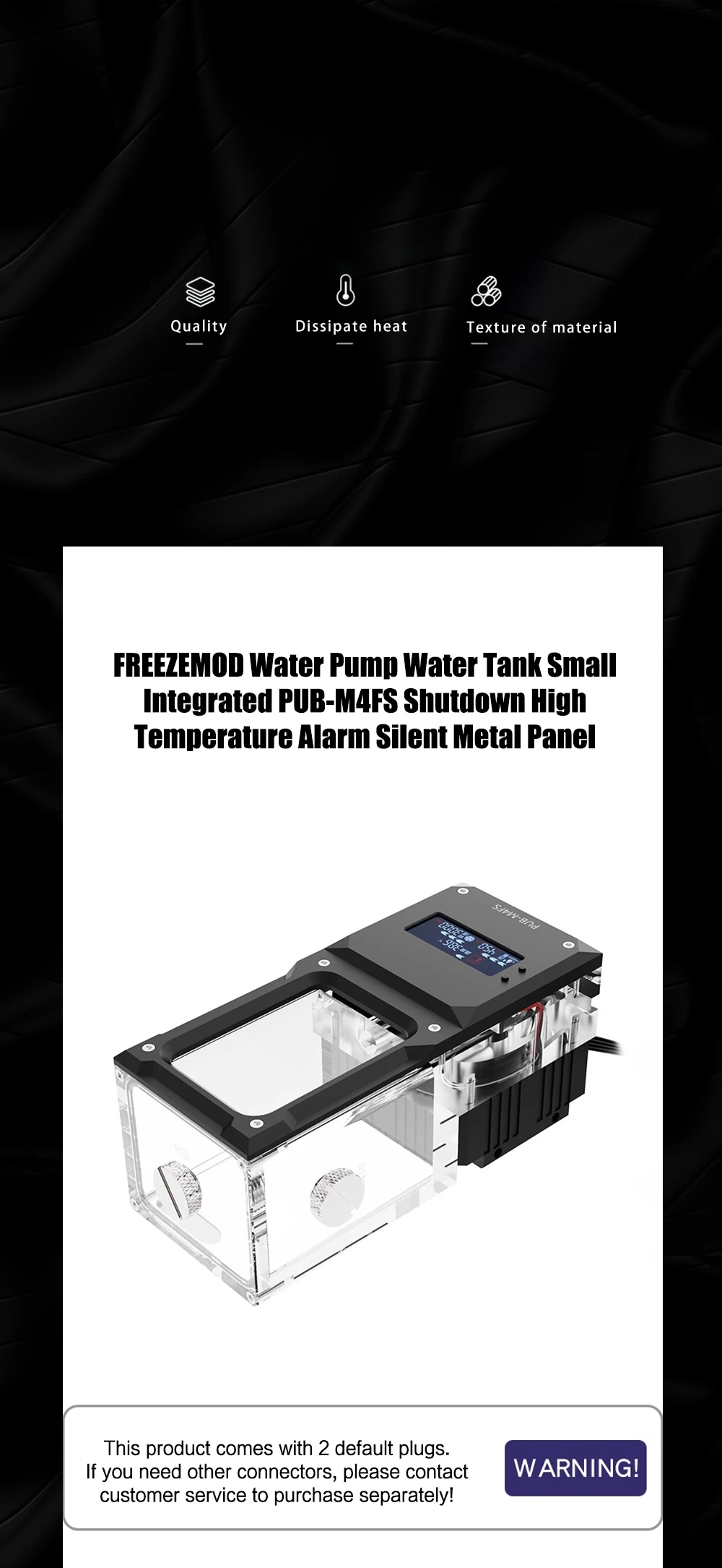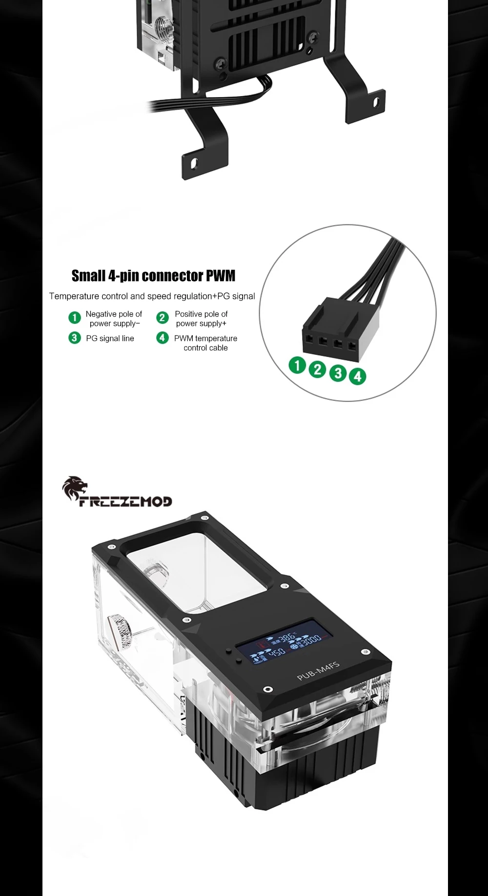 FREEZEMOD Mini bomba de agua cuadrada AIO + depósito, alarma de alta temperatura de apagado, panel metálico silencioso, PUB-M4FS