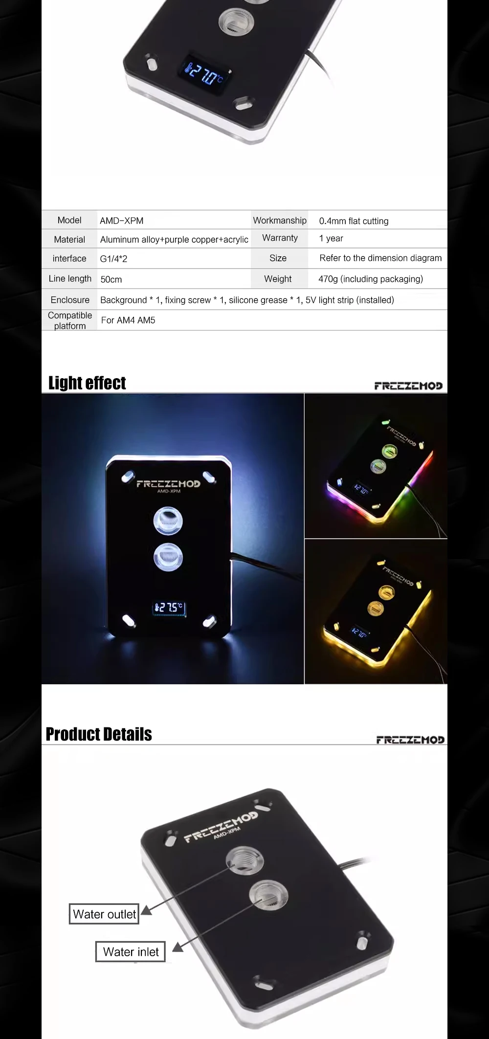 Accesorios: backplane * 1, tornillo de fijación * 1, grasa de silicona *, banda de luz de 5 V (instalada),