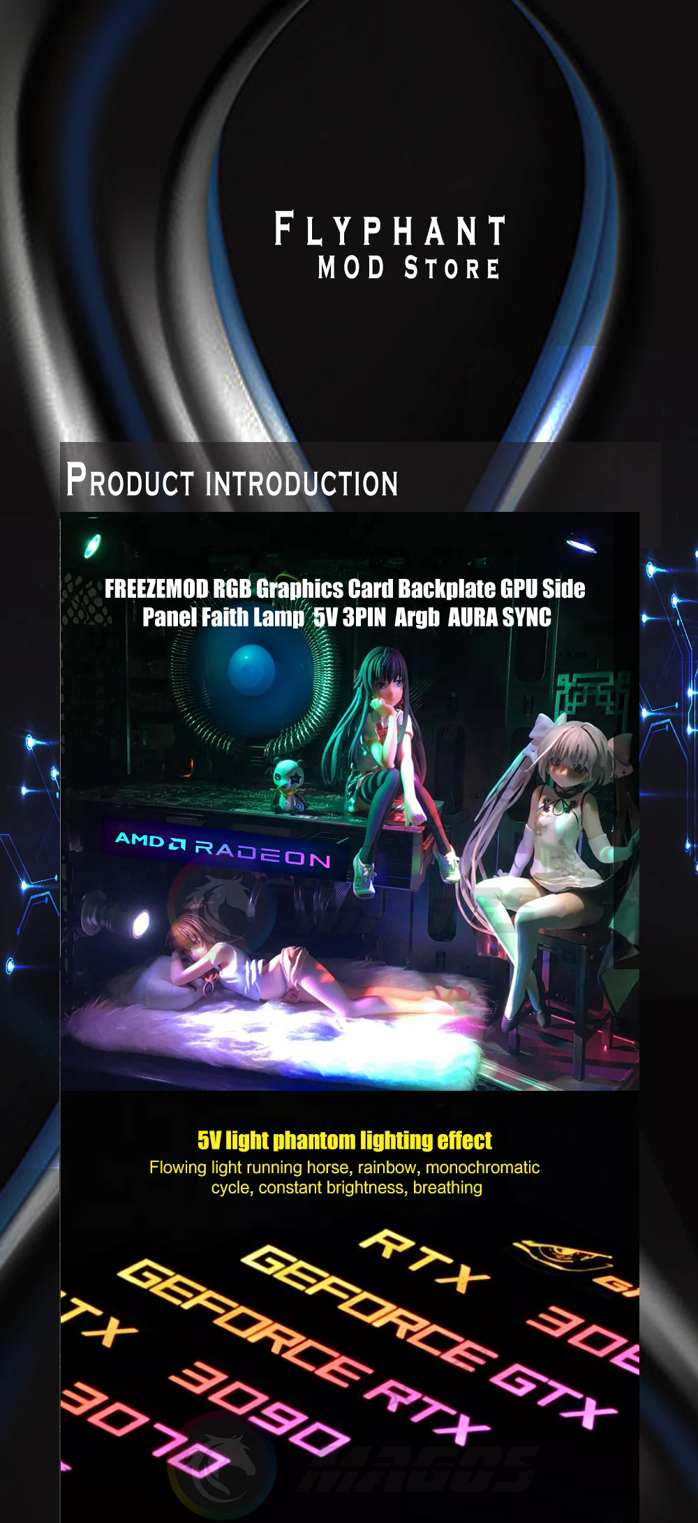 FREEZEMOD RGB GPU Panel lateral 3090 3080 GTX ROG Tarjeta de video VGA Placa de luz Lámpara Faith para PC Decoración de gabinete AURA SYNCEspecificación: