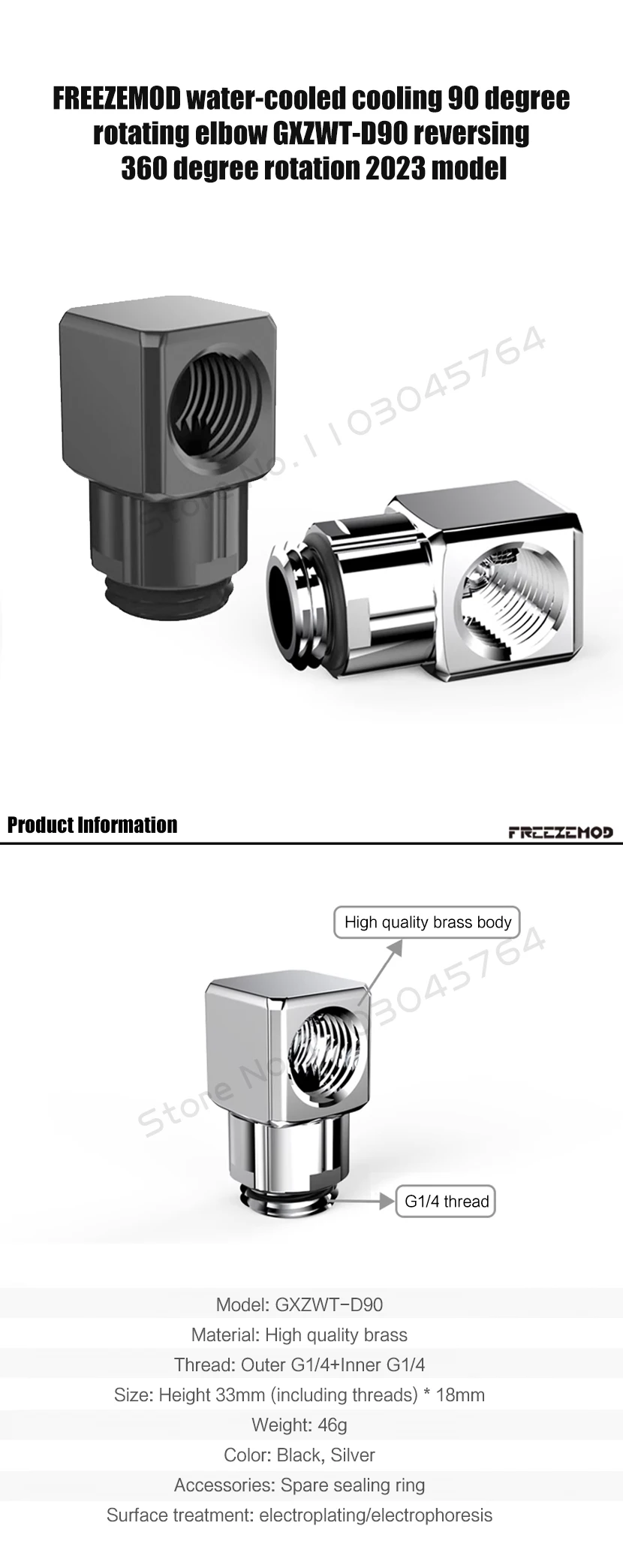 Comprar FREEZEMOD PC Acoplamiento en ángulo inverso para refrigeración por agua, codo giratorio de 90 grados 360 ° Rotación, 2 Colores GXZWT-D90