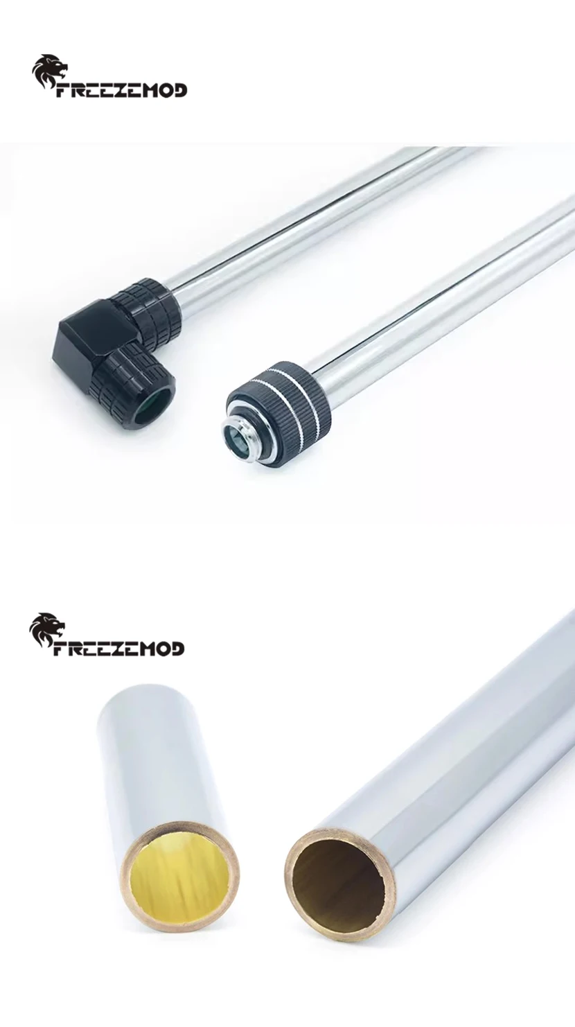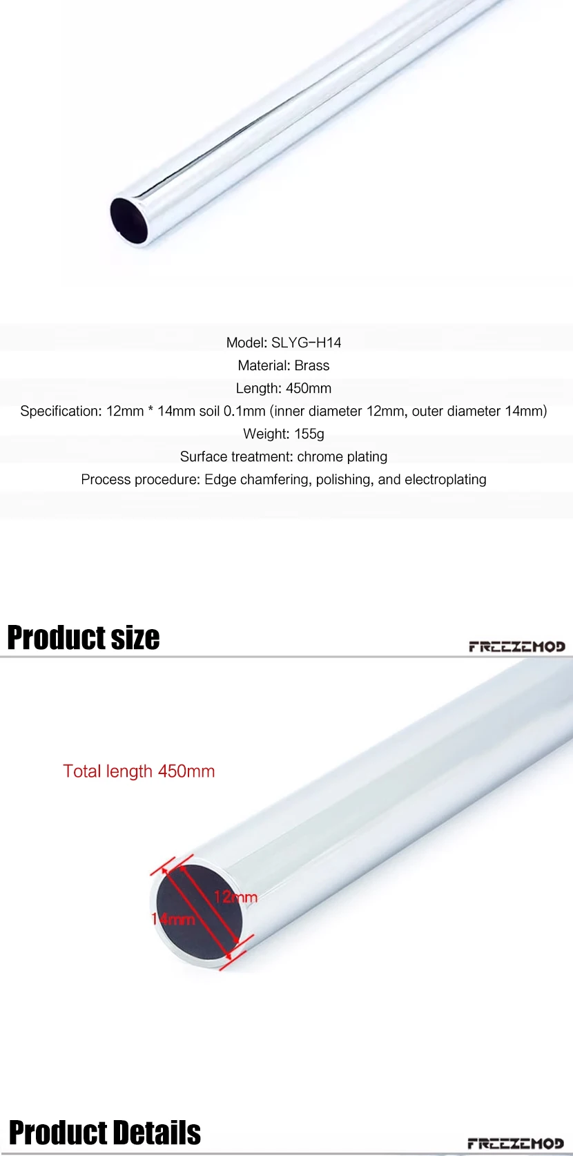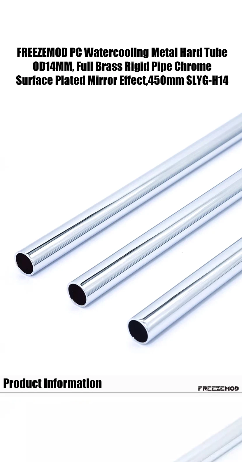 Comprar FreezeMod PC Tubo duro de metal con refrigeración por agua OD14MM, tubo rígido de latón completo, efecto espejo chapado en superficie cromada, 450 mm