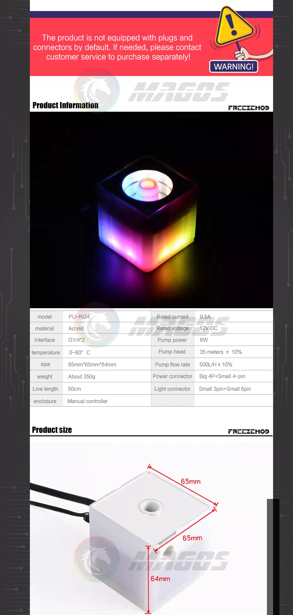Comprar FREEZEMOD PU-RG4 Bomba DDC Caja de PC Cabezal de bomba de enfriamiento por agua 3.5M Flujo 500L/H Silencioso con efecto de fantasía