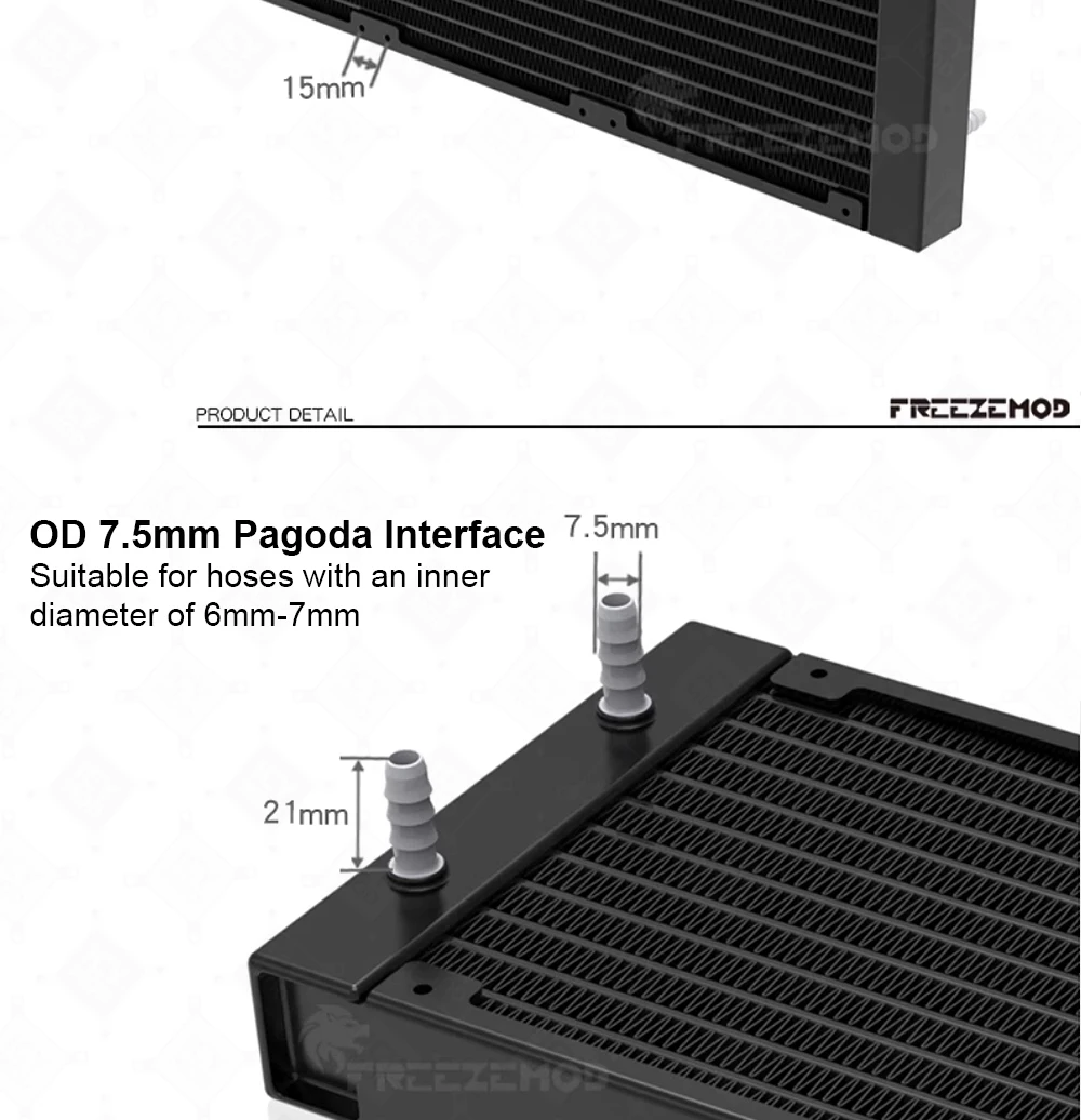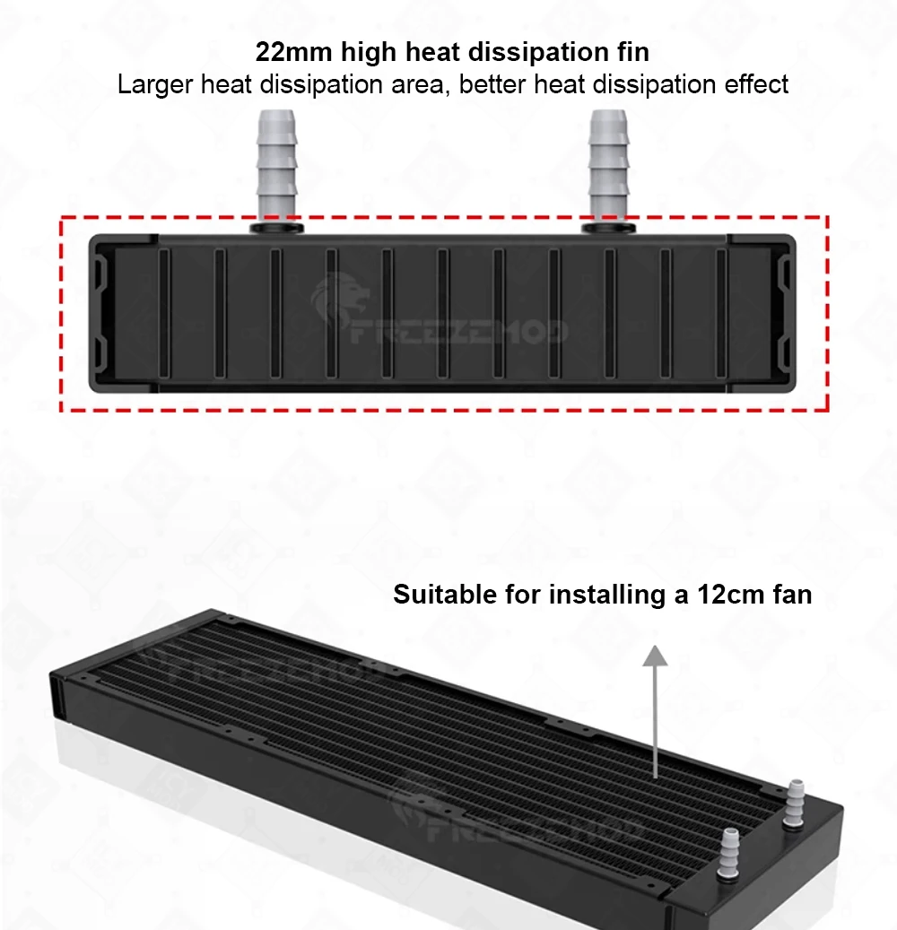 Comprar FREEZEMOD-Radiador de aluminio de 360mm, Enfriador de agua para PC, refrigeración líquida, aleta de onda ancha de 22mm, 12 vías de agua para ventilador de 12CM, SR-LP22-360