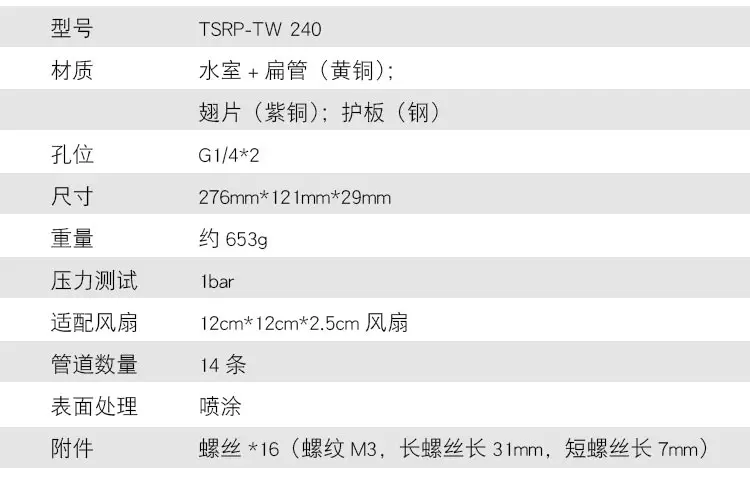 FREEZEMOD radiador de cobre de refrigeración por agua para computadora 14 Tubo plano aleta de cobre de una sola capa para ventilador de 12cm para disipador de calor de CPU, TSRP-TW240