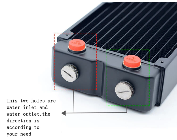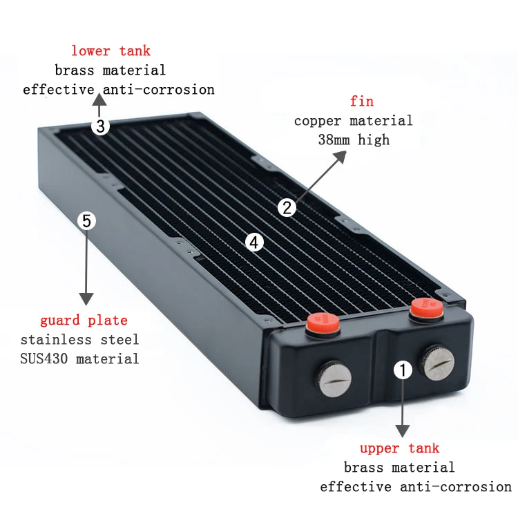 Material: Cámara de agua + Tubo plano (latón), aleta (cobre), placa protectora (hierro inoxidable SUS430)