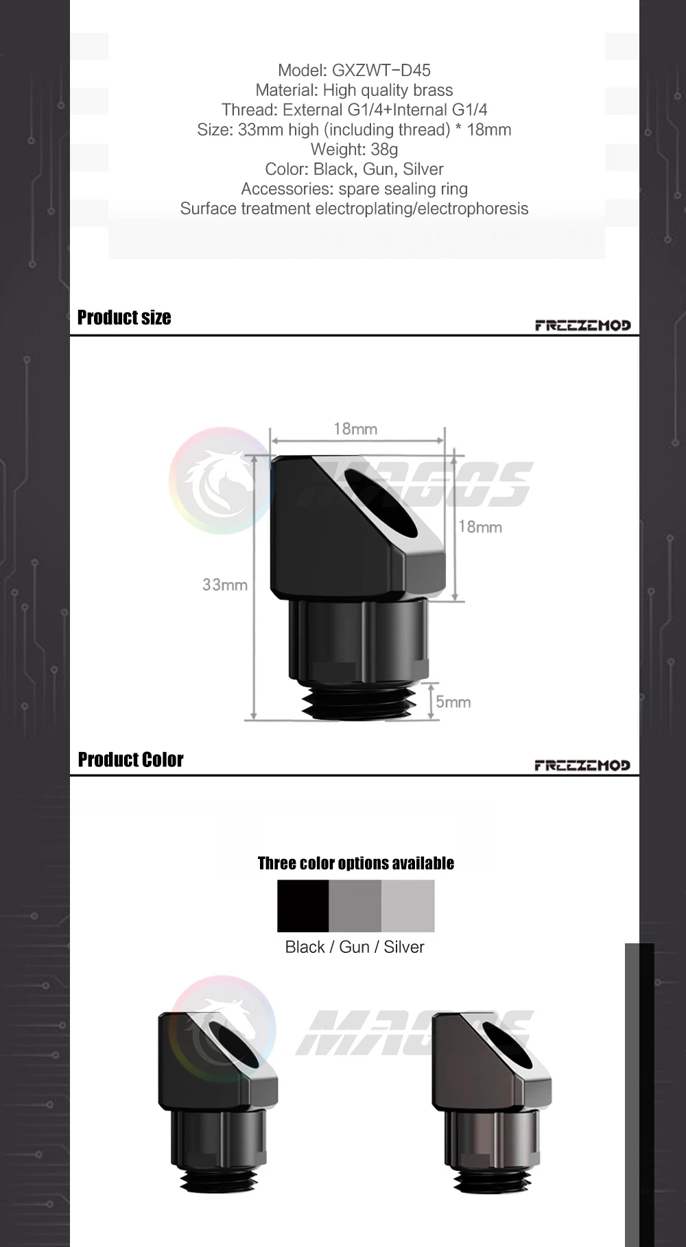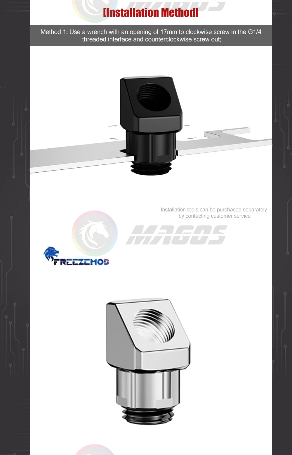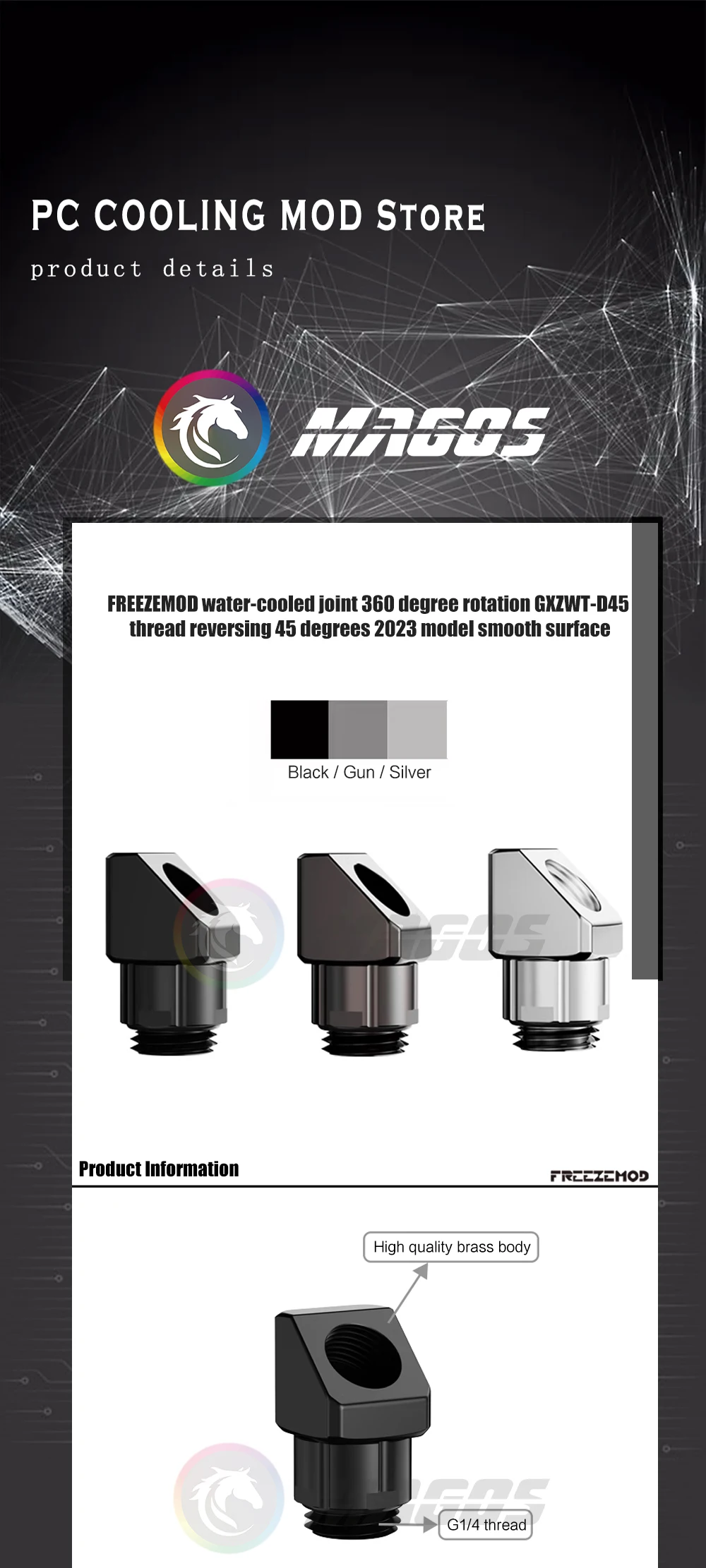 FREEZEMOD-refrigeración por agua, accesorio Universal con ángulo de 45 °, giro de 360 °, resalte el tipo de superficie, Negro/plateado/GXZWT-D45 de pistola