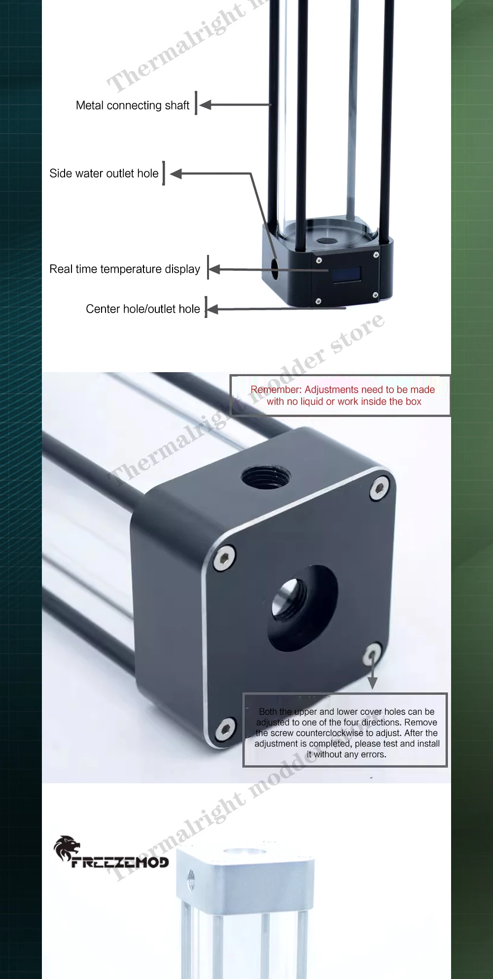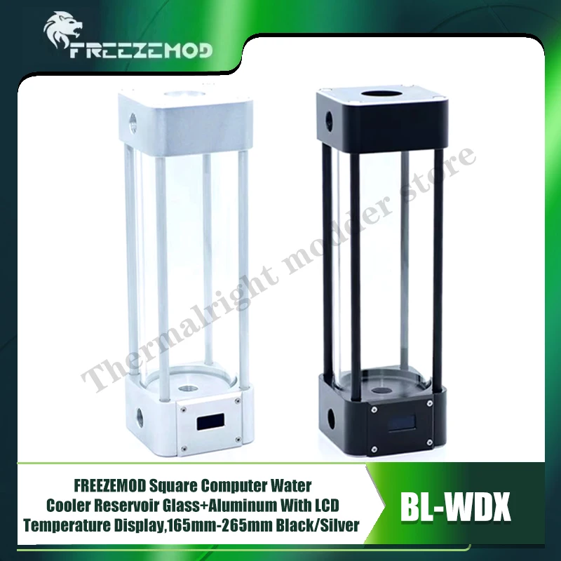 Comprar FREEZEMOD-respador de agua cuadrado para ordenador, depósito de vidrio + aluminio con pantalla LCD de temperatura, BL-WDX negro/plateado de 165mm-265mm