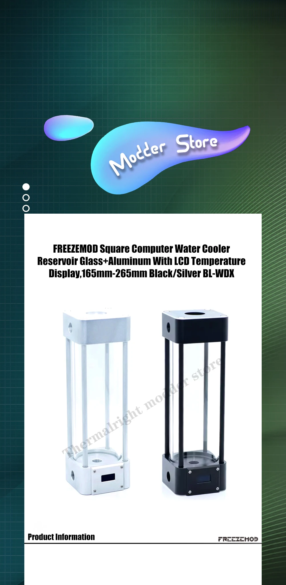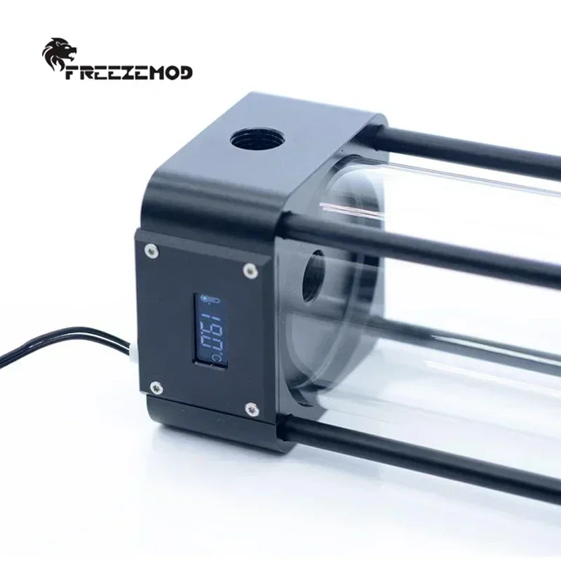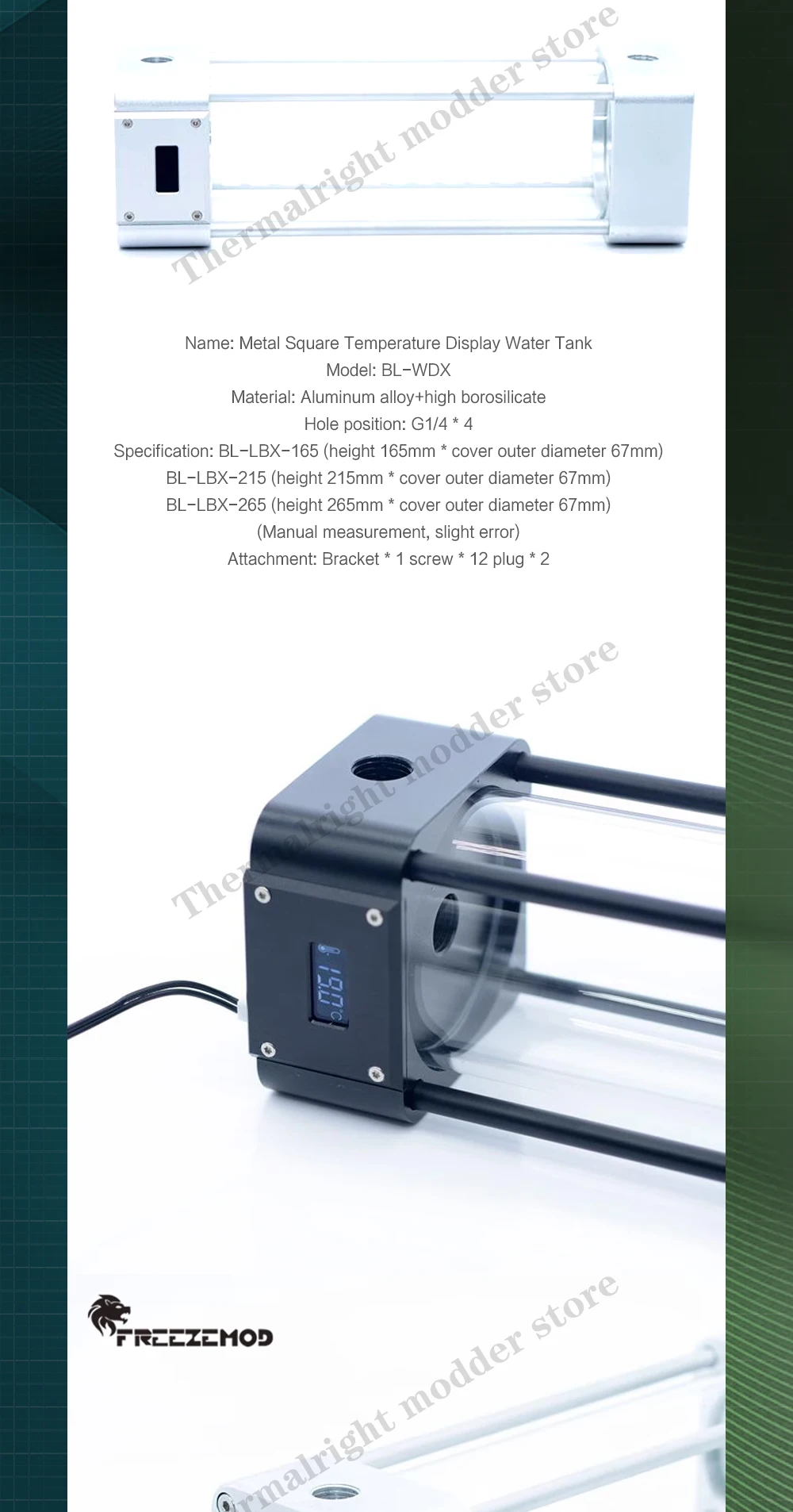 FREEZEMOD-respador de agua cuadrado para ordenador, depósito de vidrio + aluminio con pantalla LCD de temperatura, BL-WDX negro/plateado de 165mm-265mm