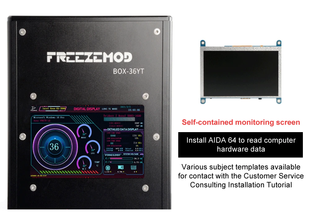 Comprar FREEZEMOD-sistema de refrigeración por agua de escritorio todo en uno, Kit de enfriador de líquidos AIO, fila de cobre de doble capa, pantalla LCD de 45mm, BOX-36YT