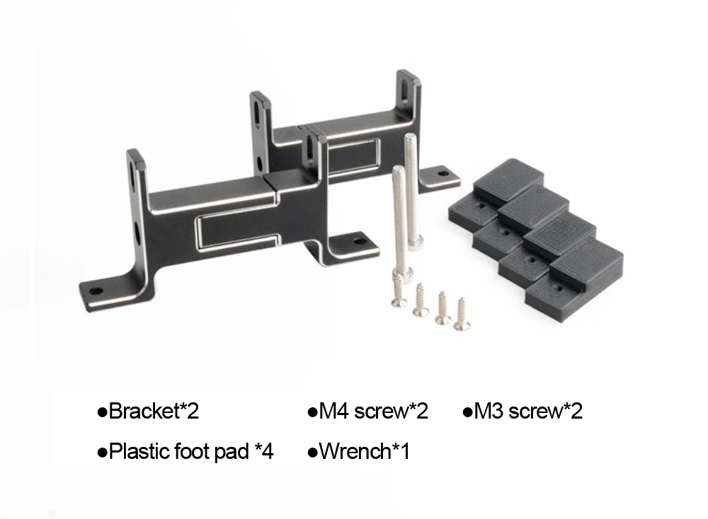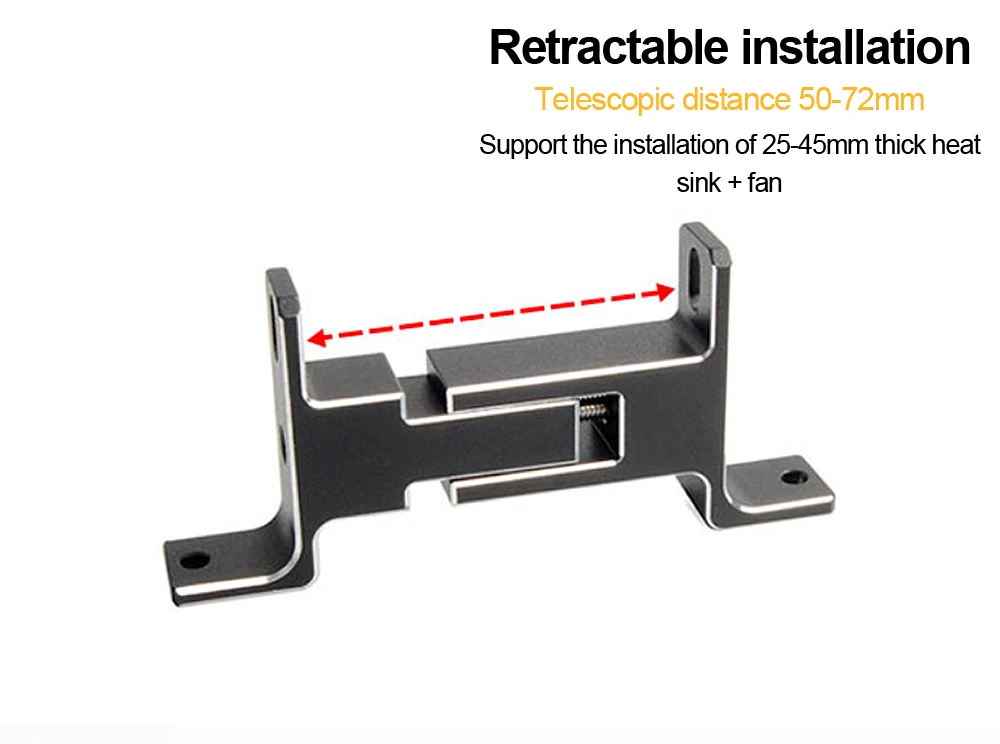Nombre: Soporte de radiador externo Material: aleación de aluminio Modelo: PJ-WSZJ Tamaño: 15*43*91m (retráctil) Color: negro, Plata Peso: 120g Tratamiento superficial: electroforesis Accesorios: soporte * 2, tornillo M4 * 2, tornillo M3 * 2, almohadilla de pie de plástico * 4, llave * 1