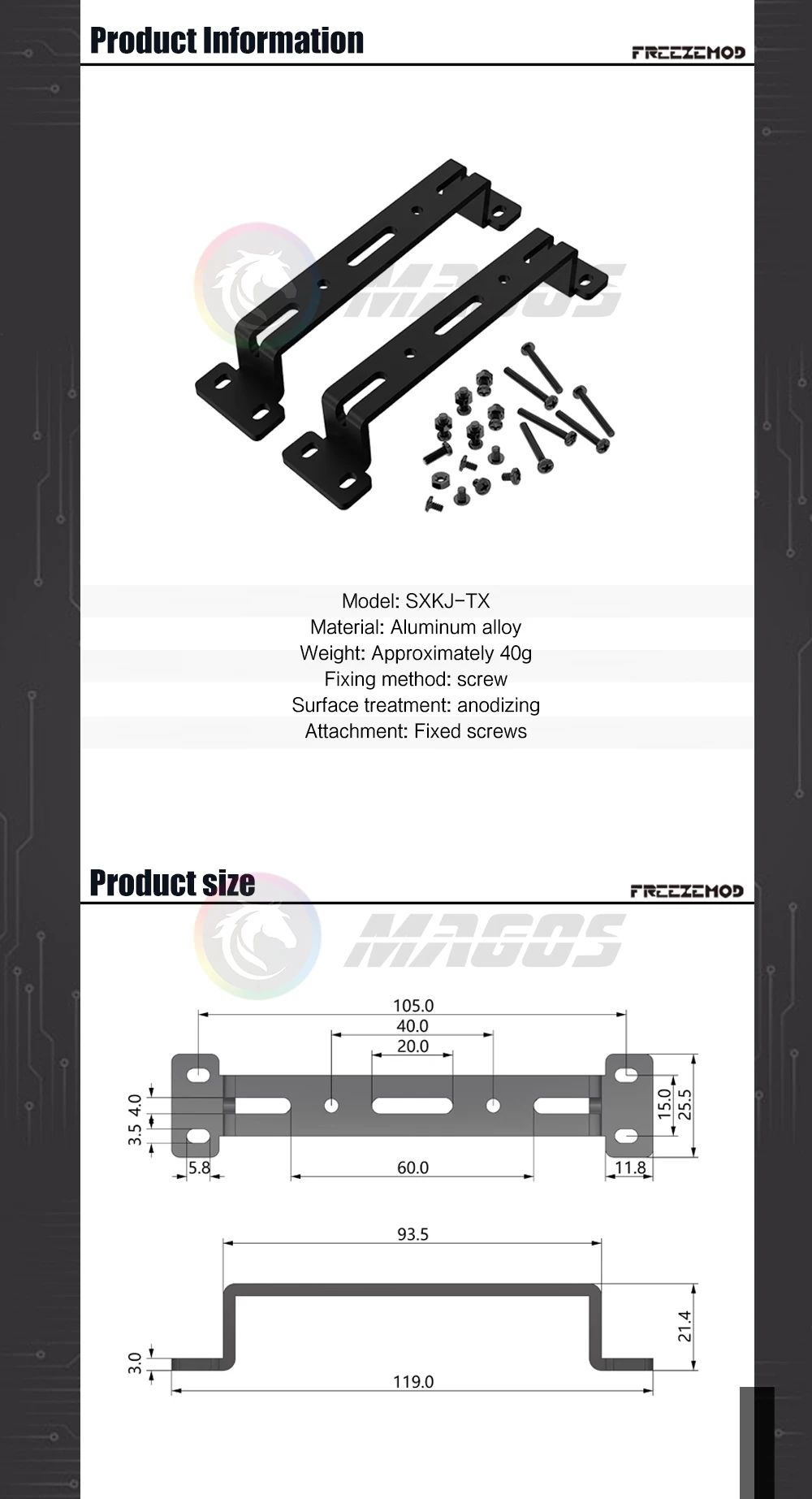 FREEZEMOD Soporte de montaje convexo para fijación de pared de fila de depósito/bomba/radiador, aleación de aluminio SXKJ-TX
