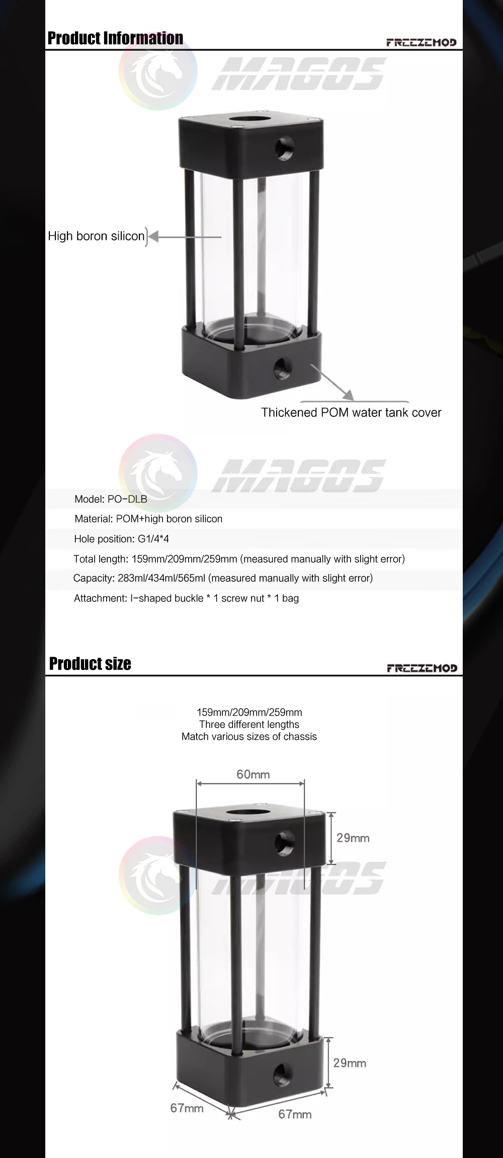 Comprar FREEZEMOD-tanque de agua cuadrado refrigerado por agua para ordenador, cubierta de caja de agua POM, rosca G1/4, 2023/159/209mm de longitud, MOD PO-DLB, novedad de 259