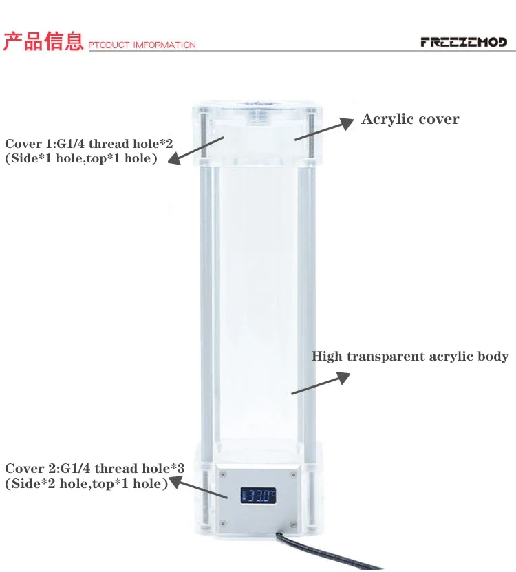 Comprar FREEZEMOD Tanque de agua Pantalla LCD de temperatura depósito acrílico cuadrado 5V ARGB 3PIN AURA SYNC