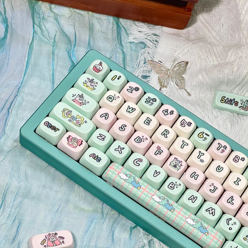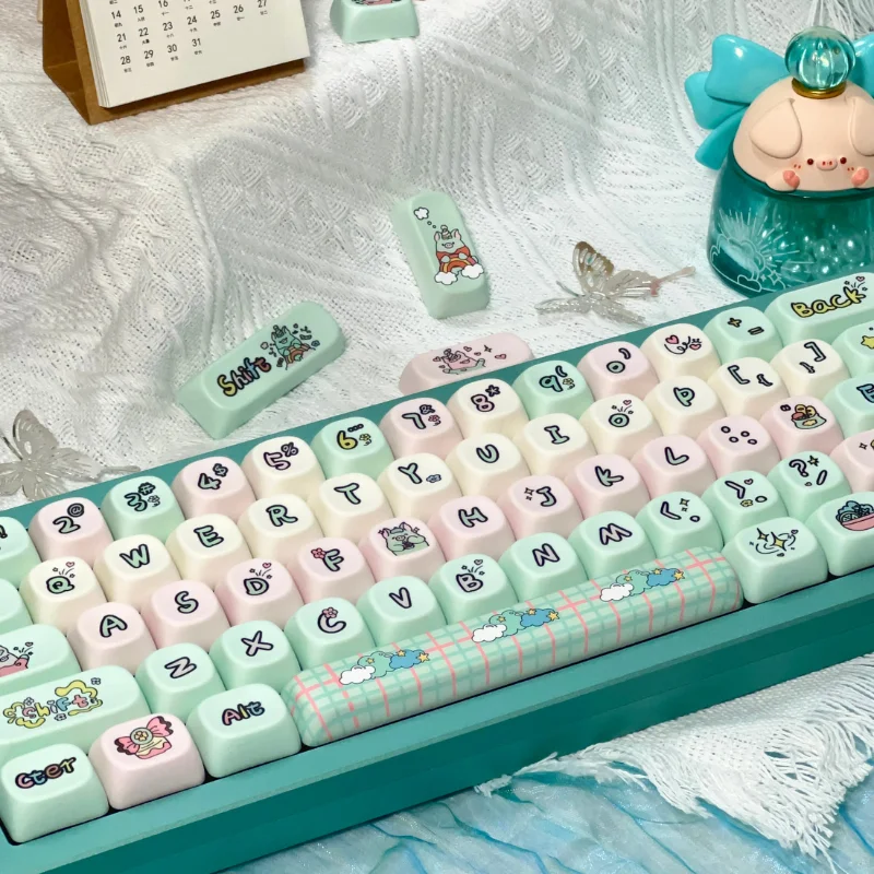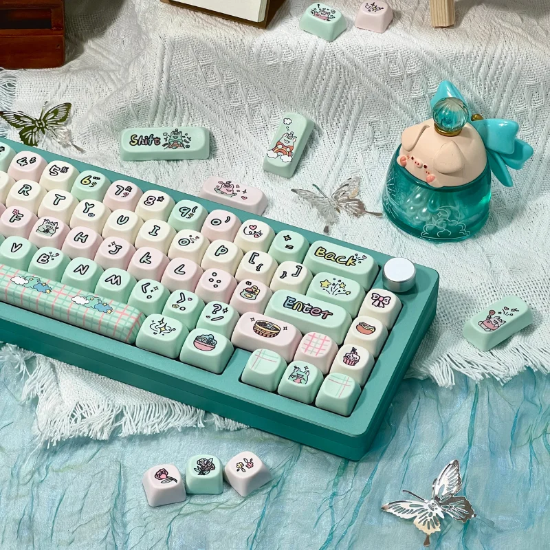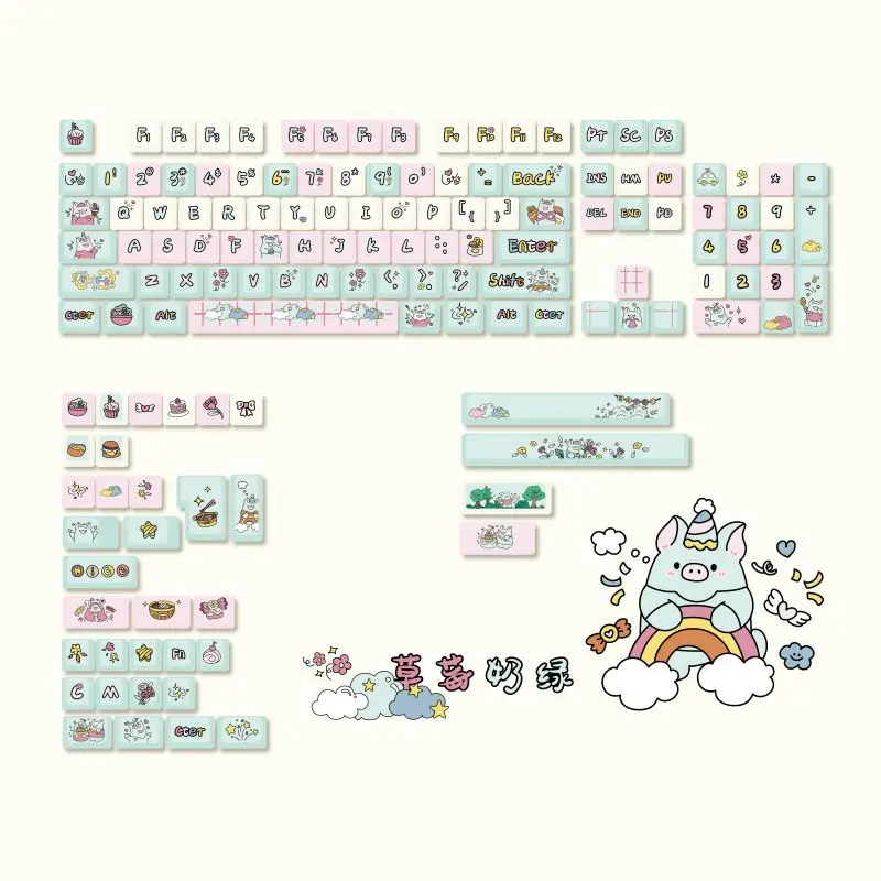 Comprar Fresa Piggy Keycap 140 teclas MOA perfil térmico sublimación PBT teclas para bricolaje Teclado mecánico Rosa verde teclas lindas