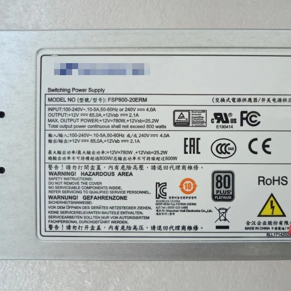 FSP800-20ERM for Inspur NF5460M4 NF8480 M4 800W server power supply