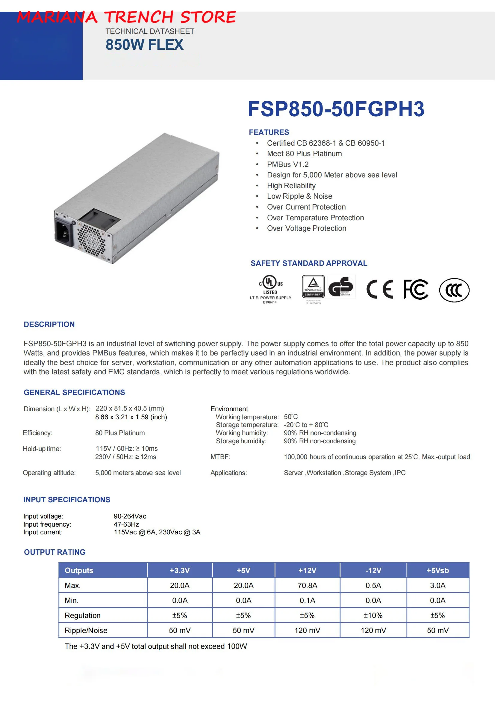 Comprar FSP850-50FGPH3 para FSP MAX 850W Nivel médico/industrial de fuente de alimentación conmutada, Meet 80 Plus Platinum