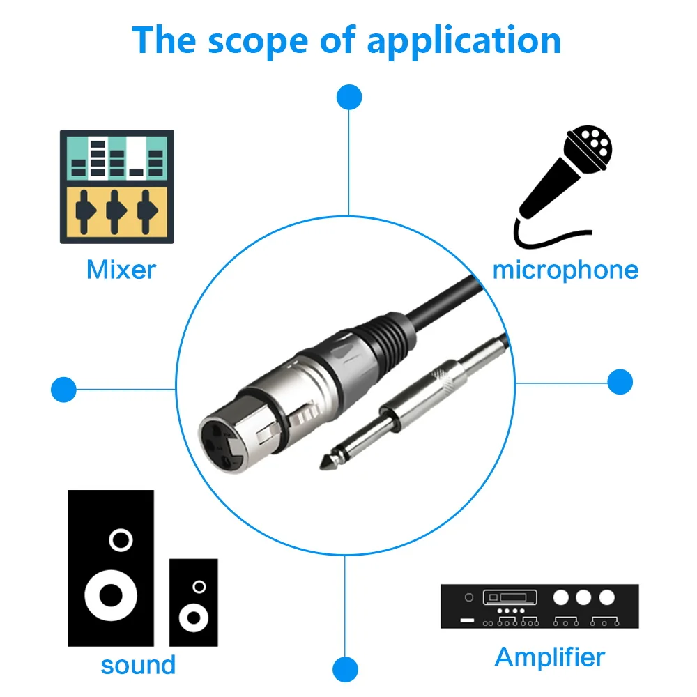 Comprar FSU-Cable de 1/4 "a XLR, 6,35/6,5mm, TS macho a XLR hembra de un cuarto de pulgada, TS a XLR, Cable de conexión para micrófono, 0,5 m-10m