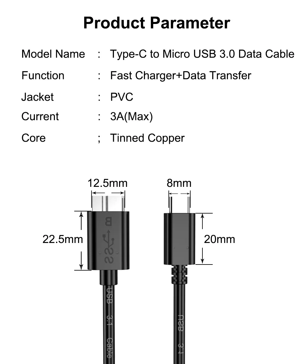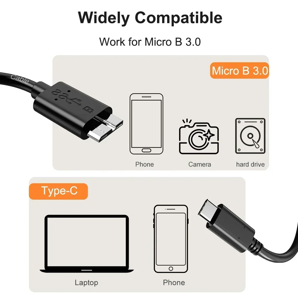 Comprar FSU-Cable externo para disco duro, Cable USB Micro B 3,0, Cable de sincronización de datos rápida para disco duro, HDD, SSD, interfaz USB C o A