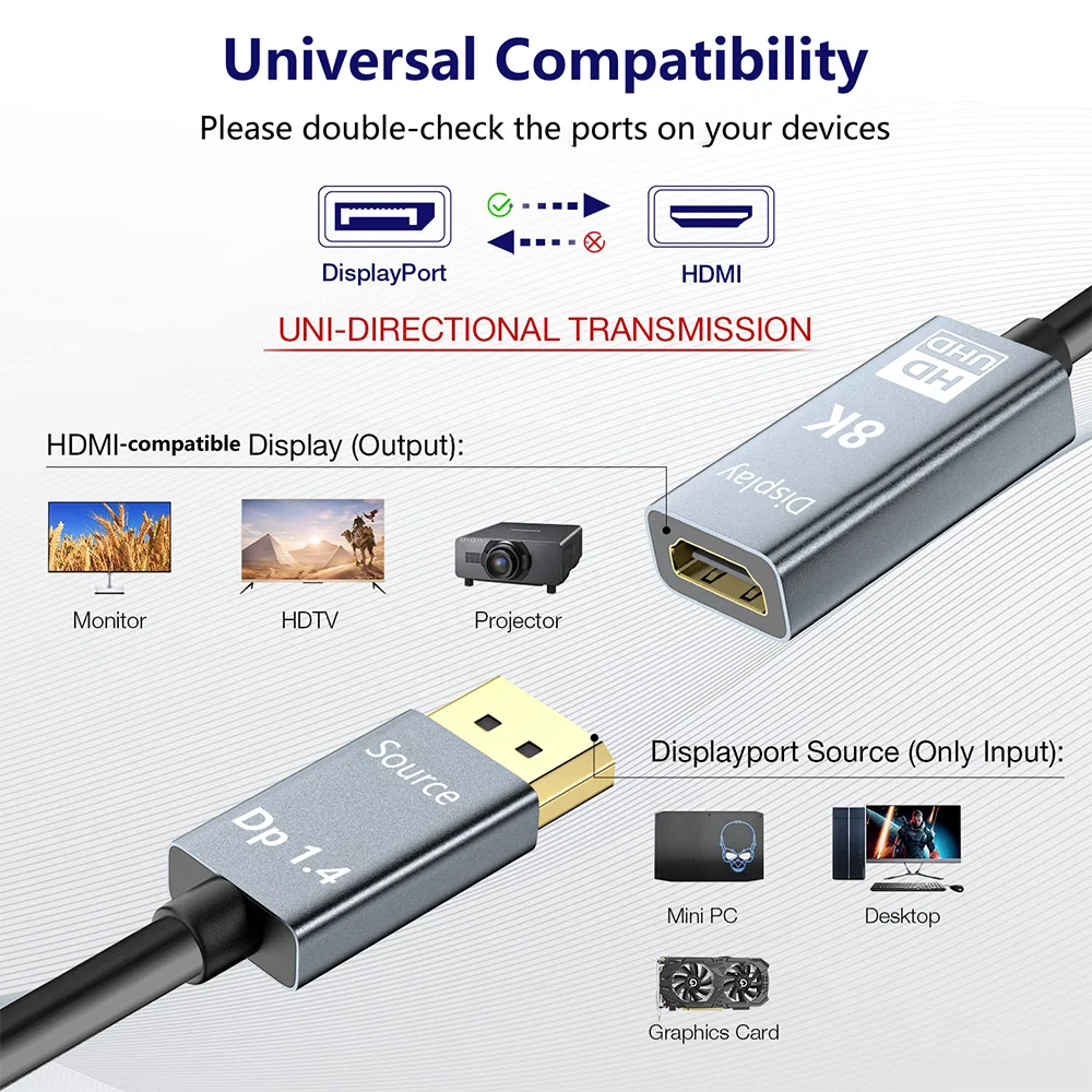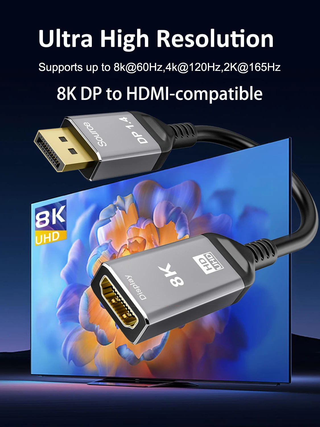【Displayport activo 1.4 aCompatible con HDMIAdaptador 2.1 8K】