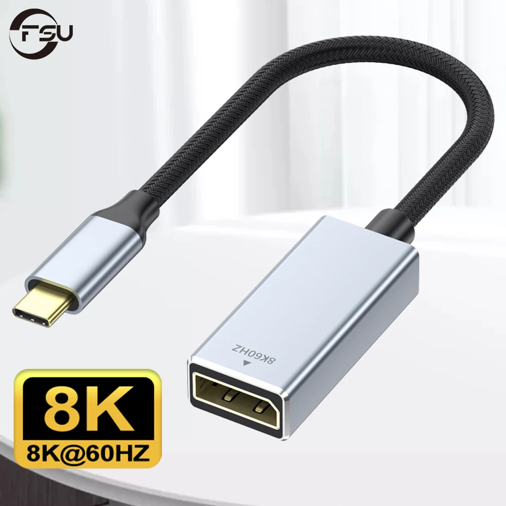 Comprar FSU USB 3,1 tipo C a Displayport 8K @ 60Hz DP 1,4 Cable trenzado 4K 144Hz HDR USB C puerto de visualización adaptador de vídeo para MacBook Pro Air