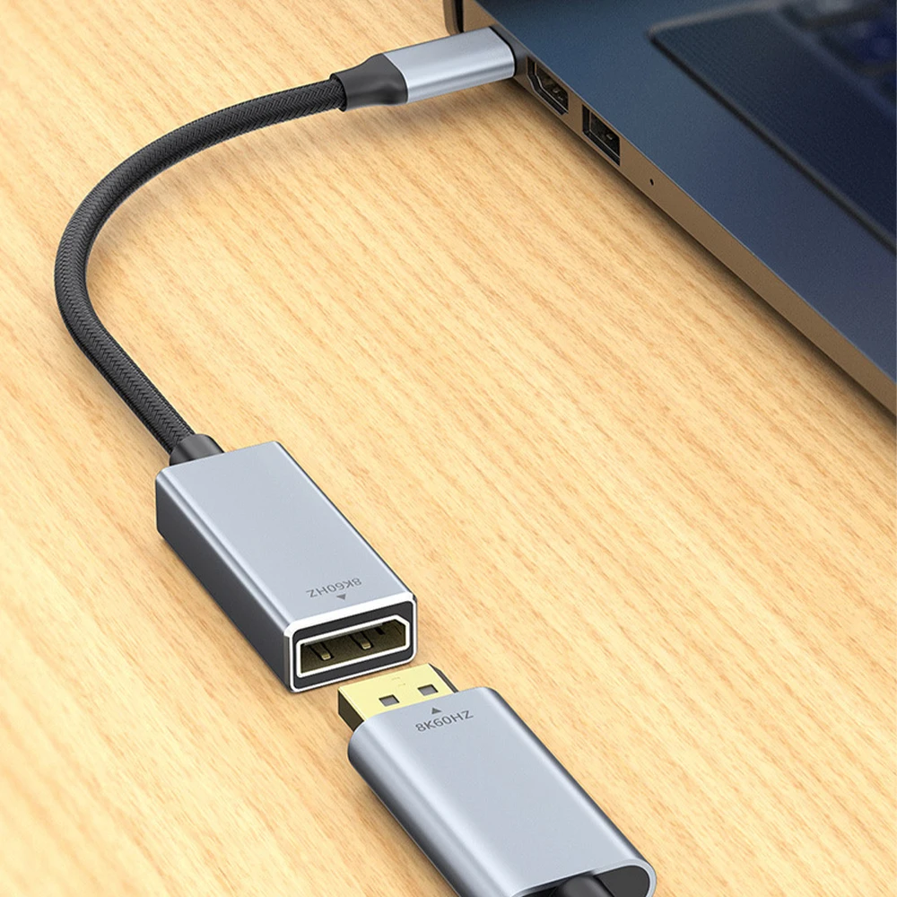 8K HDR Display Port to USB C adapter supports up to 3840x2160@240Hz / 7680x4320@60Hz with this USB C to DP adapter and compatible equipment; USB C to DisplayPort cable adapter is backwards compatible with 4K and 1080p resolution. USBC to Display Port adapter supports Multi-Stream (MST) for daisy chaining multiple monitors; USB C to Display Port adapter also supports precision audio for a full range of audio types, including SACD, DVD-Audio, DTS-HD Master Audio, and Dolby TrueHD.