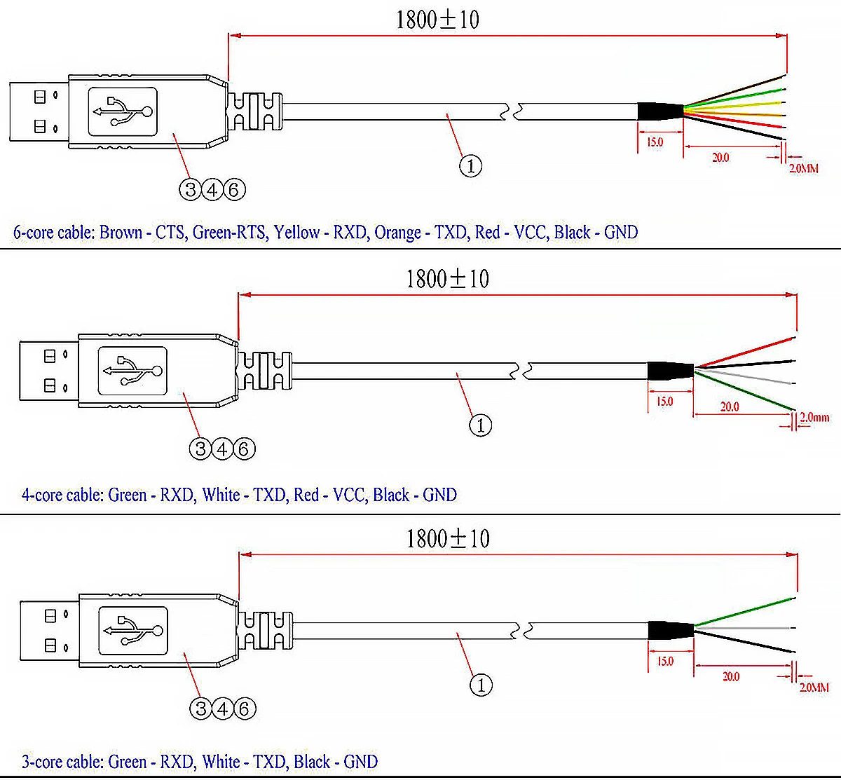 Asignación de pines 03: naranja-TXD amarillo-RXD marrón-CTS verde-RTS negro-GND rojo-VCC