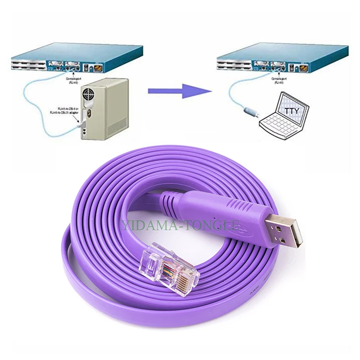 Comprar FTDI-Cable USB a RJ45 púrpura para Cable de consola Cisco, Windows 8, 7, Vista MAC Linux RS232, disponible en EE. UU., 6 pies, 10 pies, 16 pies