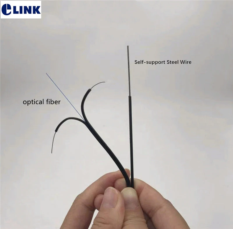 1000mtr FTTH drop cable 3 cable de acero 1 núcleo G652D fibra óptica negro blanco 2 km/rollo al aire libre autoportante Cable de mariposa ELINK Cable de bajada:
