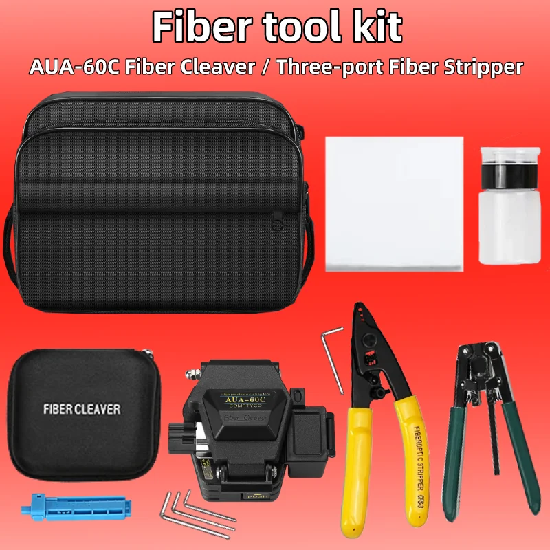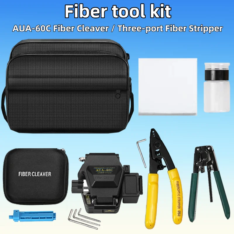 Comprar FTTH-Kit de herramientas de fibra óptica con cuchilla de AUA-60C, pelacables de cuero de fibra óptica, CFS-3, alicates Pelacables de tres puertos
