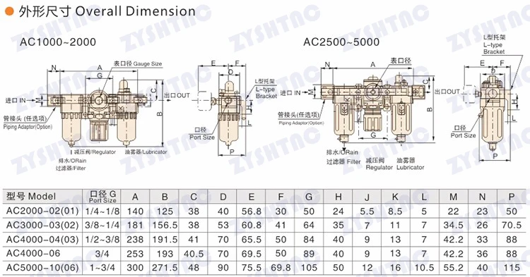 Comprar Fuente de aire tipo SMC de tres piezas AC2000-02 AC3000-03 D AC4000 AC5000(AF+AR+AL) procesador de fuente de aire drenaje automático de agua